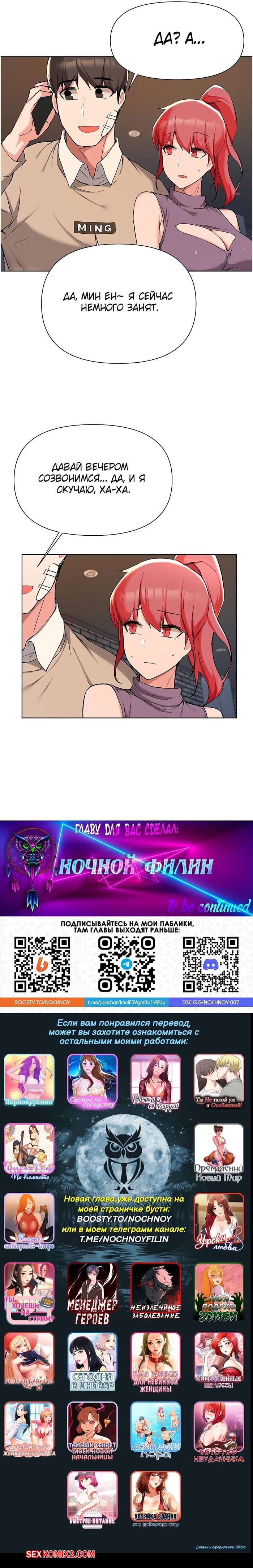 Sam2022-06-16Комикс конечно интересен, но как-то печально видеть на ту судьбу главного героя, само начало комикса уже показывает на то кем он стал, честно говоря, мне очень жалко Эрину ведь она не знает ещё что её парень изменяет ей со многими девушками, на вид гг и придурок, но в тоже время и жалко то что в прошлом на ним так издевались, единственное что мне нравится в этой манги видеть так это Хён Чжэена, ведь он единственный кто адекватный, и понимающий во всём в этом, буду ждать продолжения этого комикса, ведь мне интересно знать чем это всё кончится.