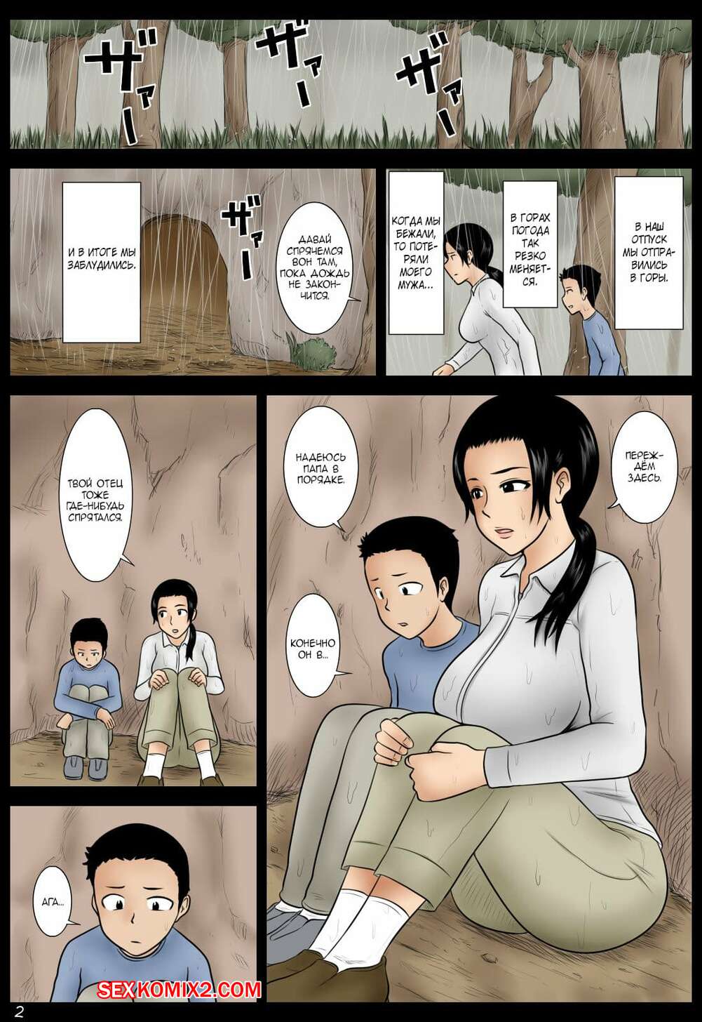 Порно комикс Во время дождя. Части 1 и 2. During the rain Парень остался со своей мамой наедине и возбудился при виде ее шикарного тела. Он стал страстно целовать красотку и ласкать ее, после чего дал ей отсосать свой большой хуй и хорошенько ее выебал.