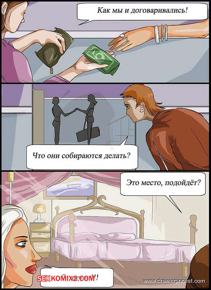 Порно комикс Сын поймал маму Парень застал свою мамку милфу за БДСМ еблей с другой дамой. Он хорошо заплатил сучке по вызову, чтобы она ушла, а сам разделся и выебал мамку в задницу, после чего кончил ей в ротик.