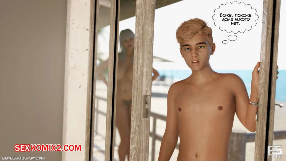 Порно комикс Нагишом. Нудистский курорт. Часть 11. Au Naturel. Pegasus Smith Блондинка милфа отправилась на поиски своего сына на острове, но наткнулась на несколько горячих красоток. Они позвали ее позагорать с ними, а сын милфы тем временем отправился к своей подруге.