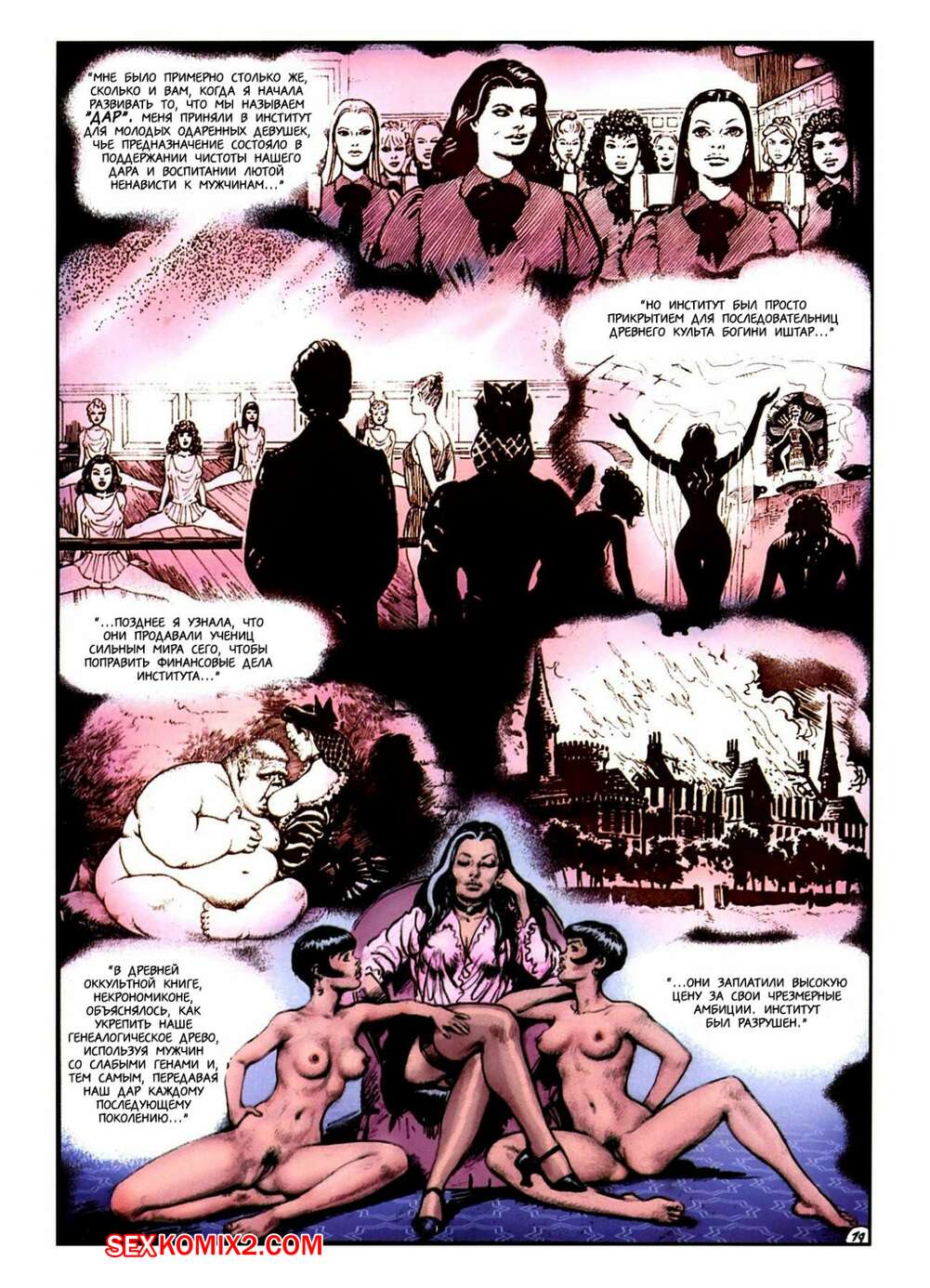 Порно комикс Юные ведьмы Горячие сисястые ведьмочки очень любят трахаться. Они раздеваются друг перед дружкой и занимаются страстной лесбийской еблей, а иногда трахаются с парнями с большими хуями.