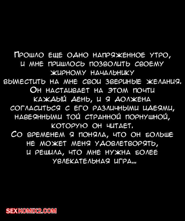 Порно комикс Офисный секрет. Office Secret Горячая сисястая милфа брюнетка решила повеселиться со своим боссом на работе. Она разделась и стала сосать его большой хуй, после чего раздвинула ножки и дала ему себя хорошенько выебать.