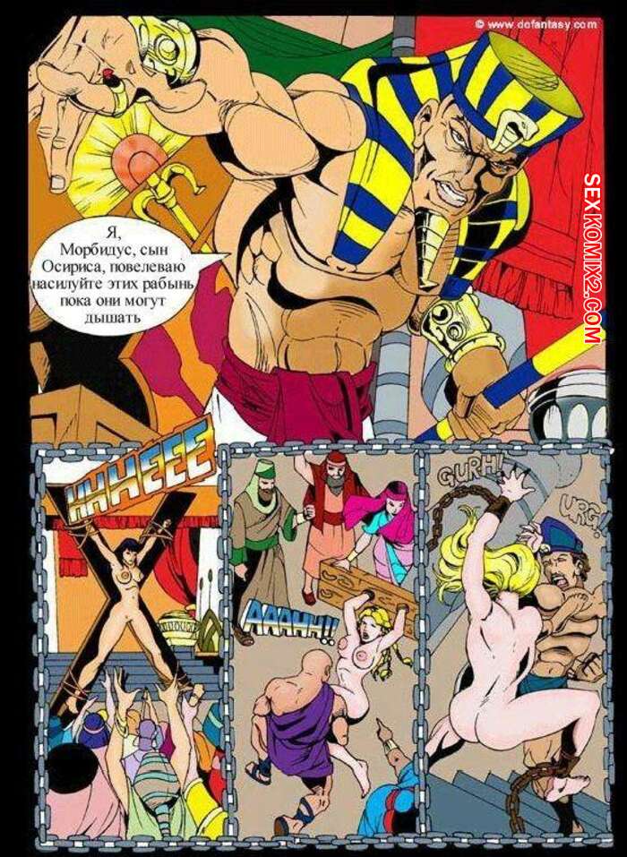 Порно комикс Эксодус Фараон создал для себя небольшой гарем из сексуальных красоток и держит их у себя на цепи. Он регулярно веселится с ними, хорошенько трахая горячих сучек, получая огромное удовольствие.