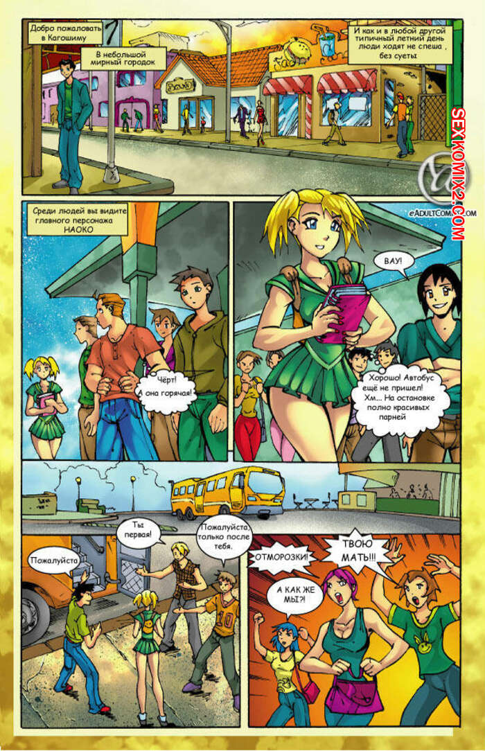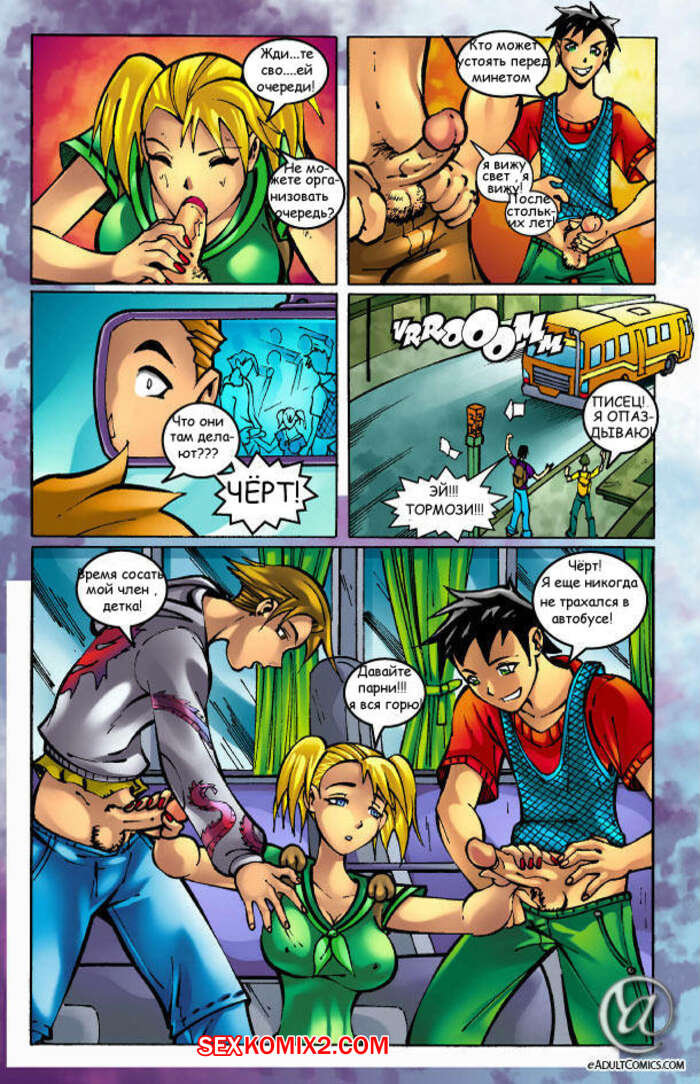 Порно комикс Секс автобус Горячая сисястая блондинка ехала в автобусе в окружении многих парней. Они возбудились при виде ее шикарного тела и решили с ней повеселиться, хорошенько выебав сучку во все дырочки.
