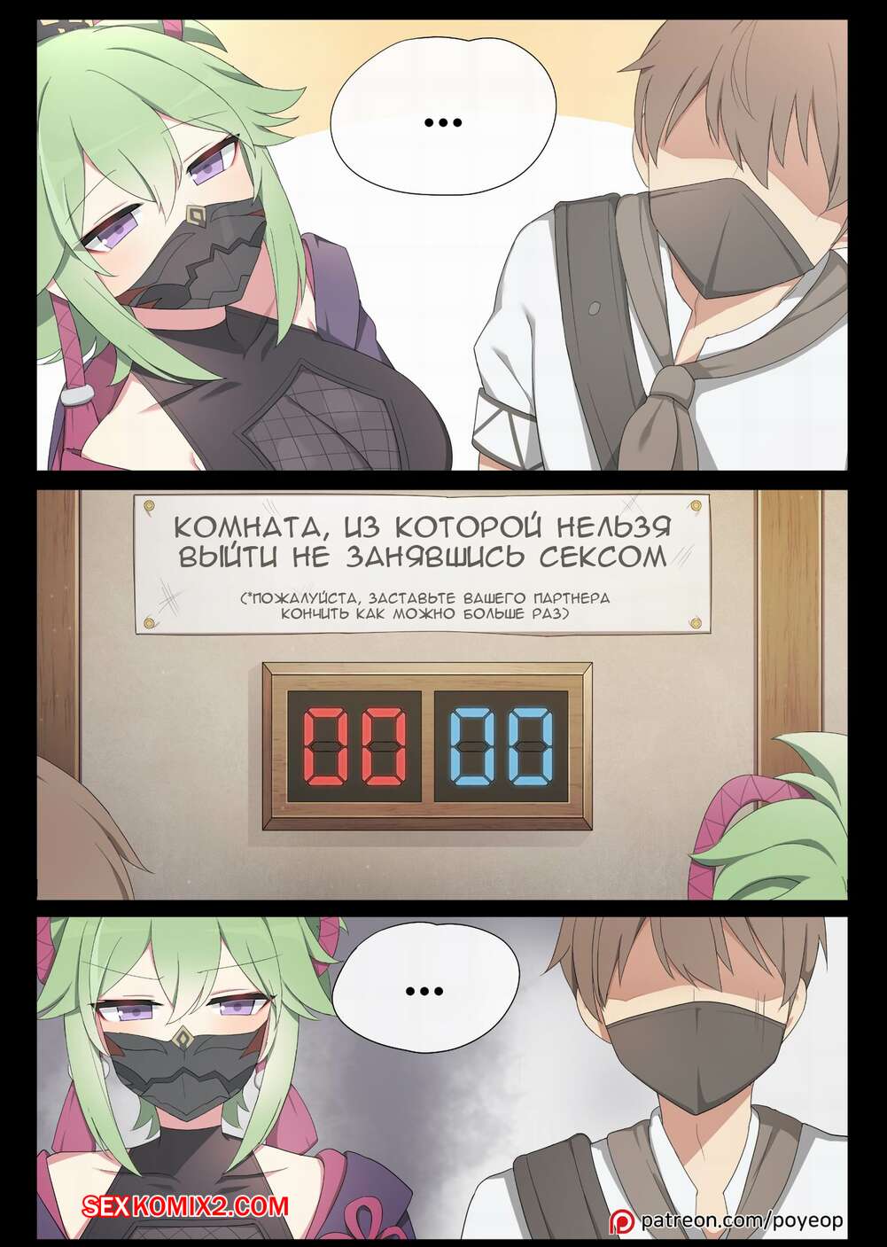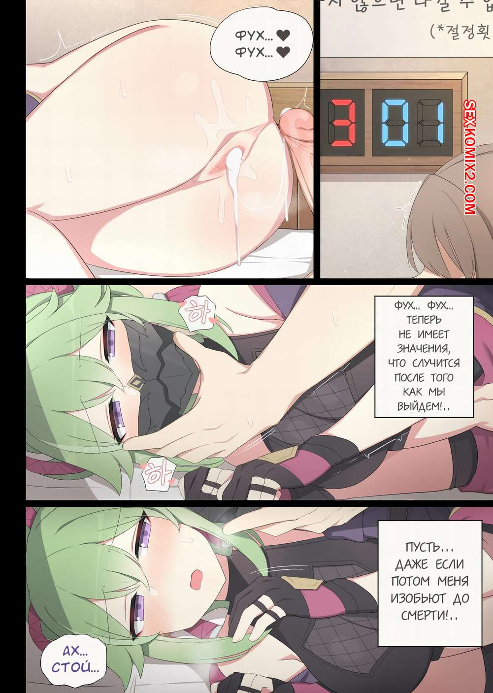 Порно комикс Genshin Impact. Комната, из которой нельзя выйти не занявшись XXX Горячая сисястая красотка решила повеселиться с пареньком в комнате. Она разделась перед ним и стала сосать его большой хуй, после чего раздвинула ножки и дала ему себя выебать.