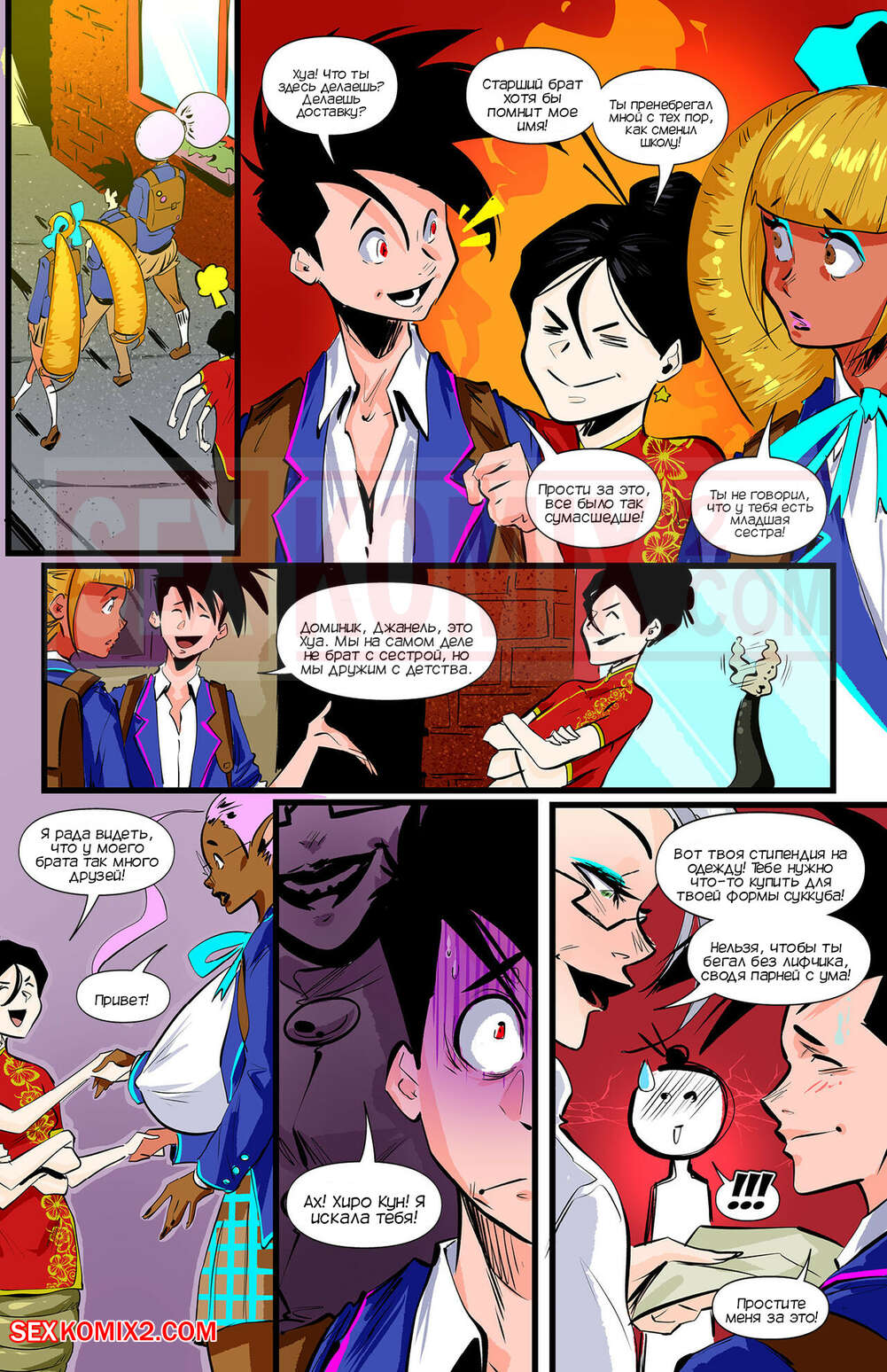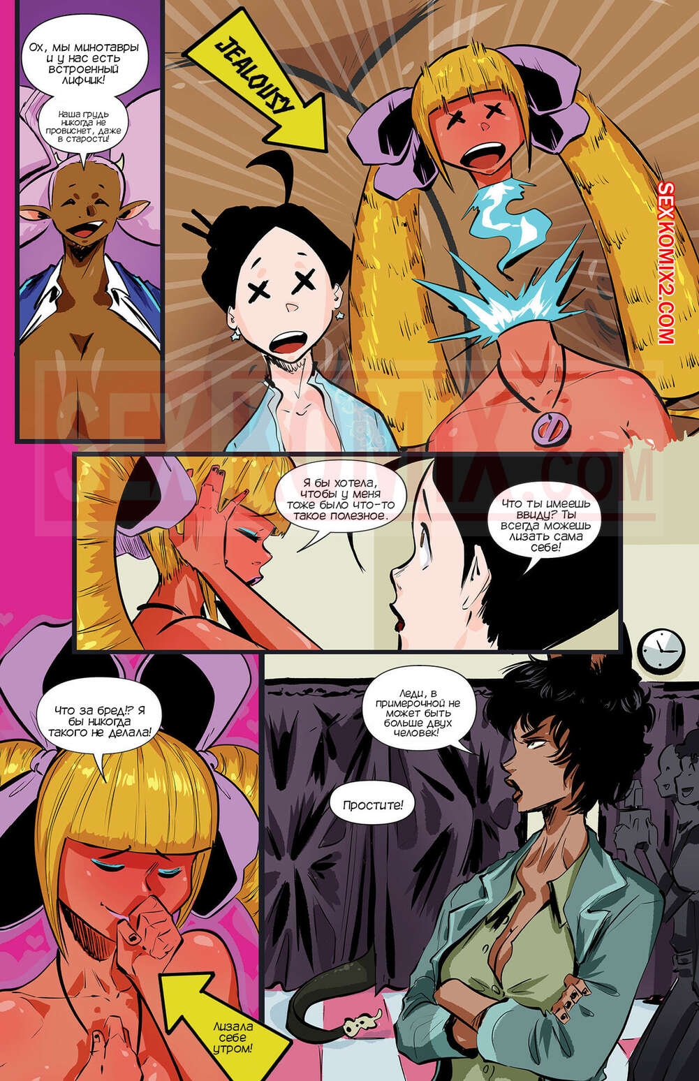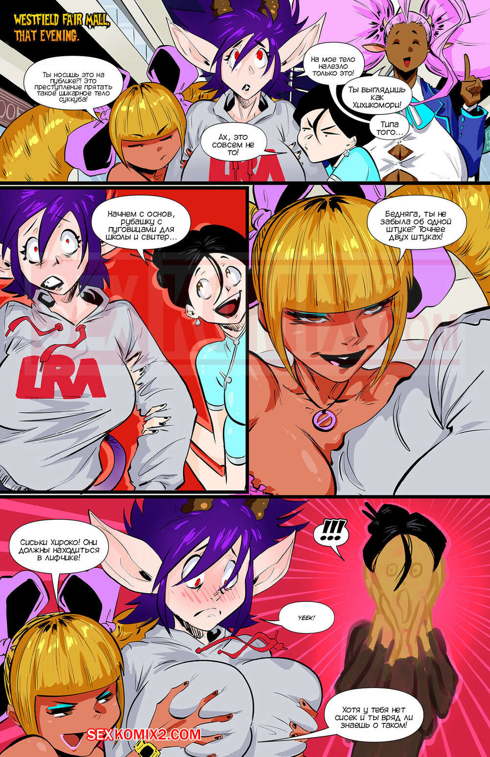 Порно комикс Академия девушек монстров. Часть 5. Monster Girl Academy. Worky Zark Парень гулял со своими подругами и встретил свою подругу детства. Они все вместе отправились в магазин одежды, чтобы подобрать для парня одежду для его формы суккуба.