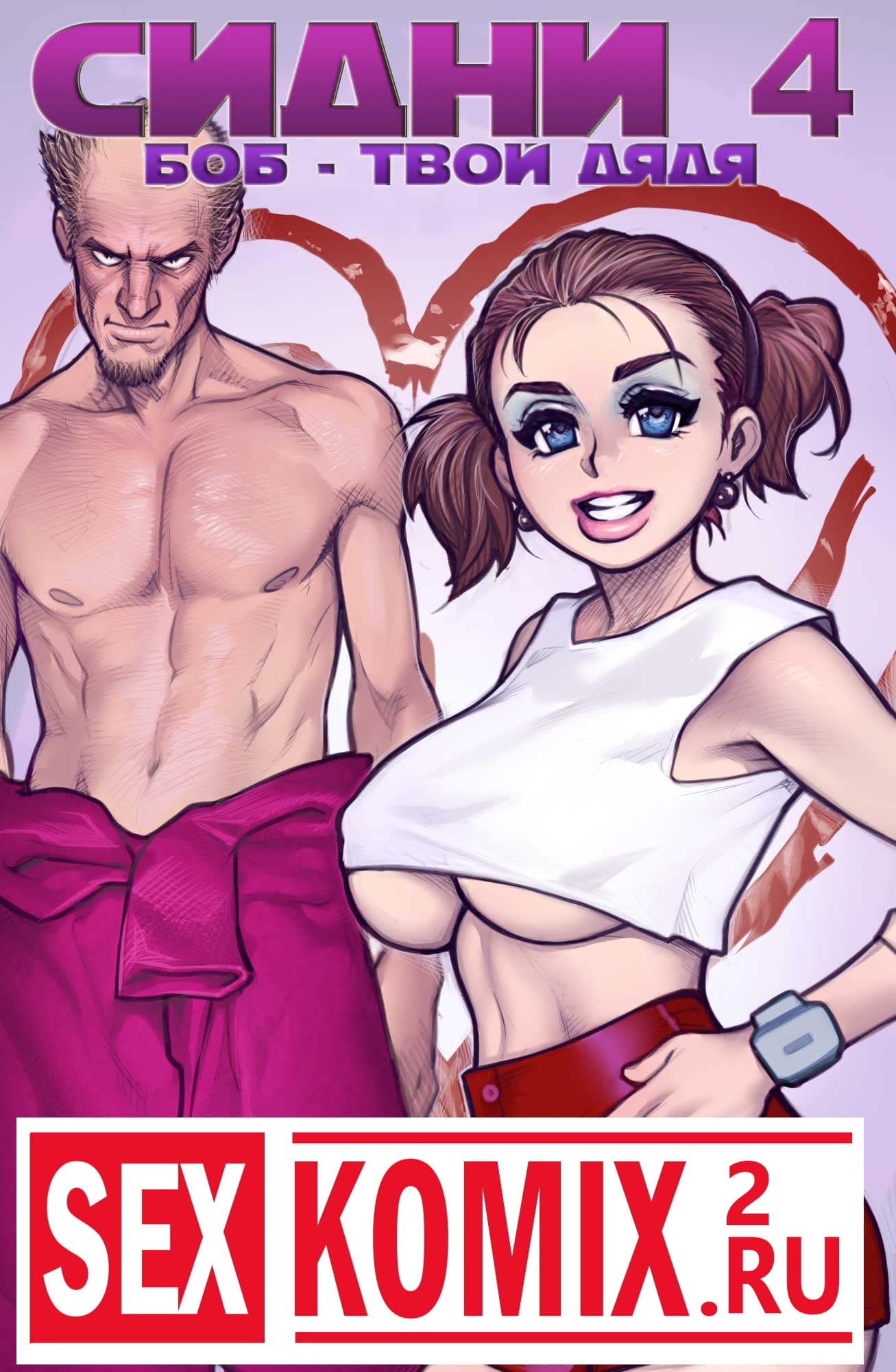 Порно комикс Сидни и Хлоя. Часть 4. Твой дядя Боб. Развратная Хлоя пришла в гости к своей подруге Сидни, они валялись в её комнате и ничего не делали. Хлоя вспомнила случай, когда она пришла в гости к ней и через окно увидела, что эта сексуальная красотка занималась сексом со своим дядей Бобом. Сидни застеснялась, но всё же согласилась рассказать подробности той истории. От сексуального рассказа Хлоя начала возбуждаться, ей захотелось поиграть с сиськами Сидни и поцеловаться с ней. Когда девушки уже были голые, в комнату зашёл тот самый дядя Боб и присоединился к ним.