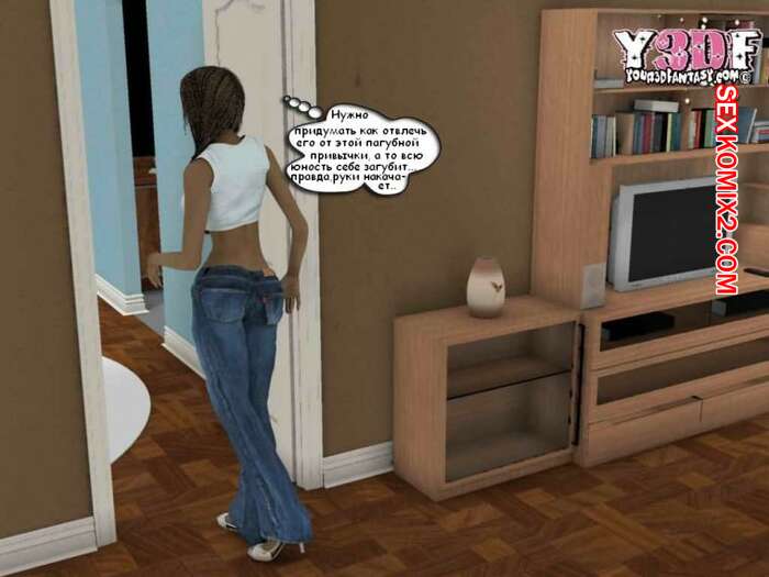 Порно комикс Порнография Парень просто без ума от шикарного тела своей мамки. Он следил за ней, когда она разделась, поэтому сучка решила с ним повеселиться. Она отсосала его большой хуй, после чего дала ему себя выебать.