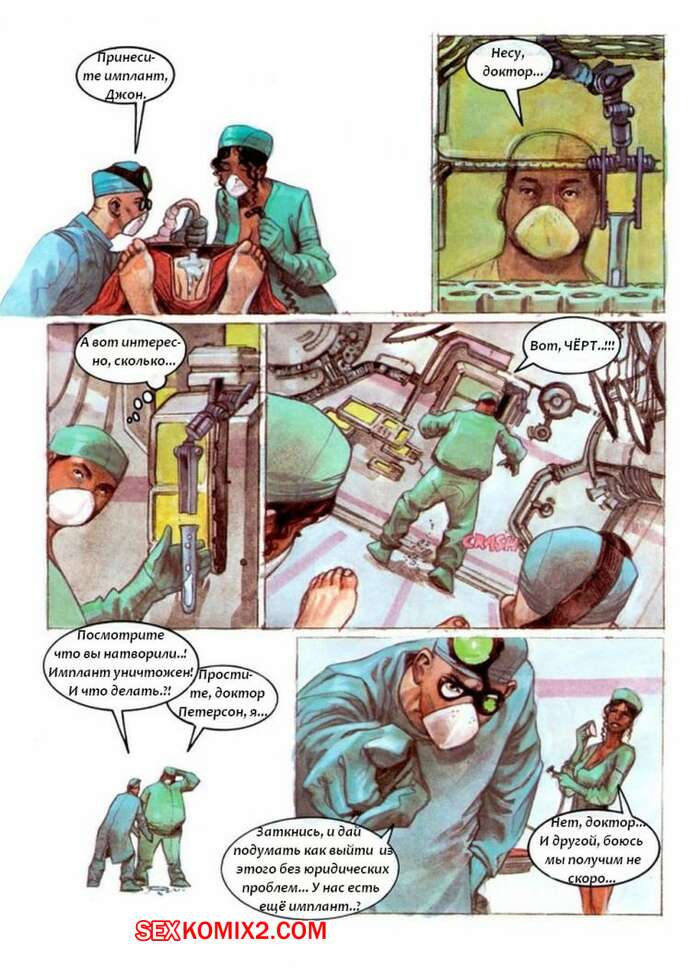 Порно комикс Ассистенты Врачи делали красотке операцию и ей понадобилось смазать пизденку. Они сказали медсестре ей отлизать, а сами в это время стали трахать темнкожую красотку.