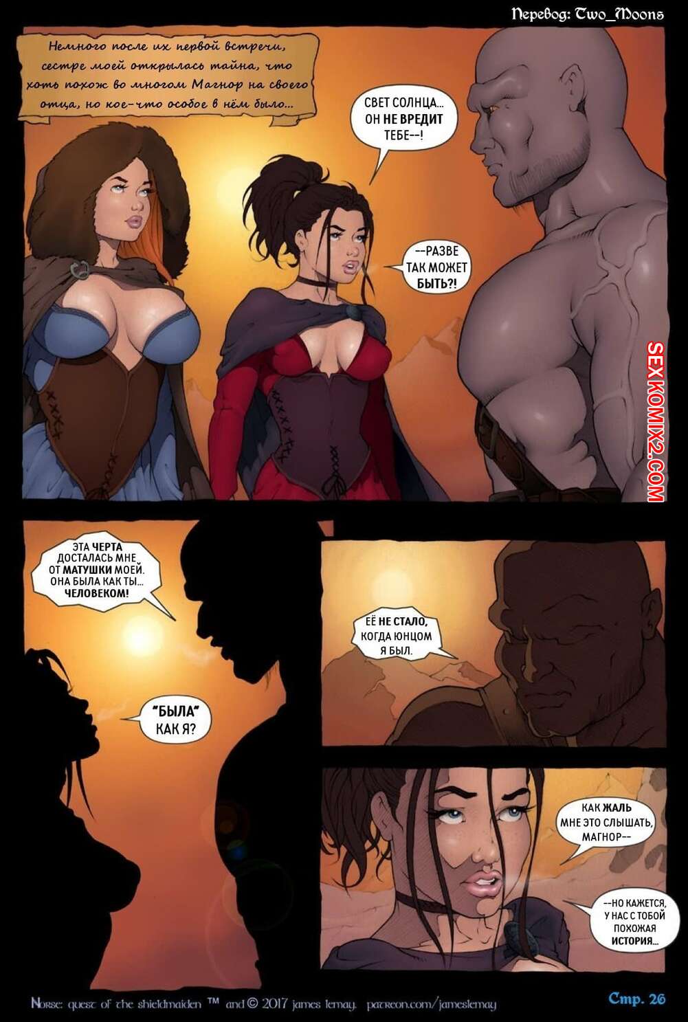 Порно комикс Викинги. Сага о щитнице. Norse The Shieldmaiden После ебли со своими дружками викингами с большими хуями, горячие сисястые красотки решили повеселиться вместе. Они разделись и стали ласкать друг дружку, после чего занялись страстной лесбийской еблей.