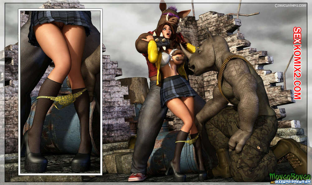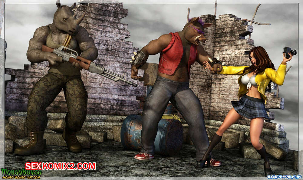 Порно комикс Бибоп и Рокстеди Два огромных монстра напали на горячую красотку брюнетку и решили воспользоваться ее шикарным телом. Они раздели ее и дали ей отсосать свои большие хуи, после чего хорошенько ее выебали и кончили в нее.