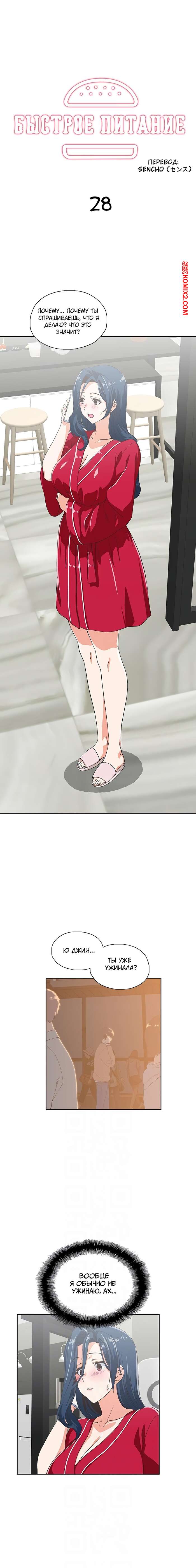 Порно комикс Быстрое питание. Части 28 и 29 и 30. Fast food. Парень пришел на рандеву к девушке. Красотка открыла ему в красном халате. Под халатом ничего нет, и скоро парень об этом узнает.