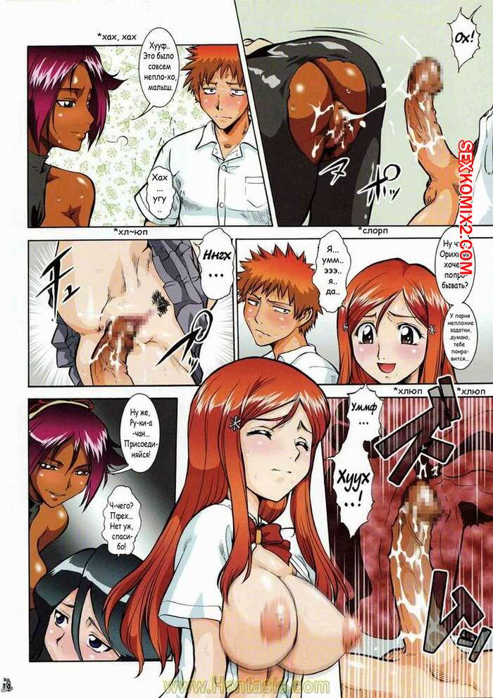 Порно комикс Бариечи. Bleach. BARIETCHI Горячие сисястые красотки студентки решили повеселиться с парнем. Они раздели его и соблазнили своими шикарными телами, после чего хорошенько его выебали, получив огромное удовольствие.