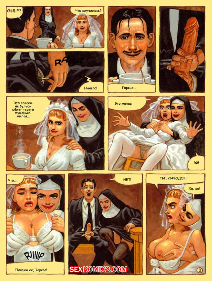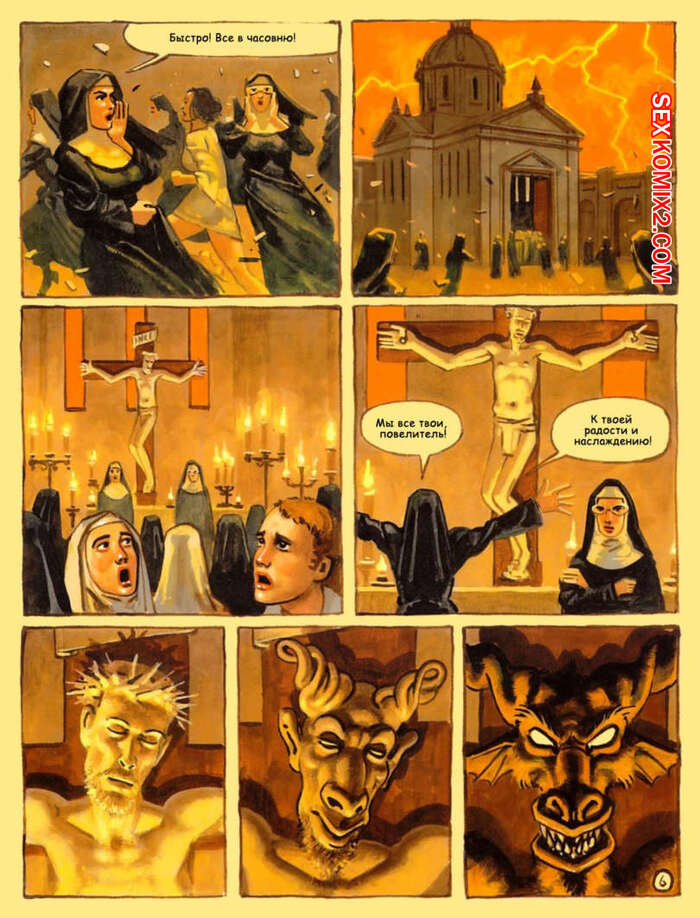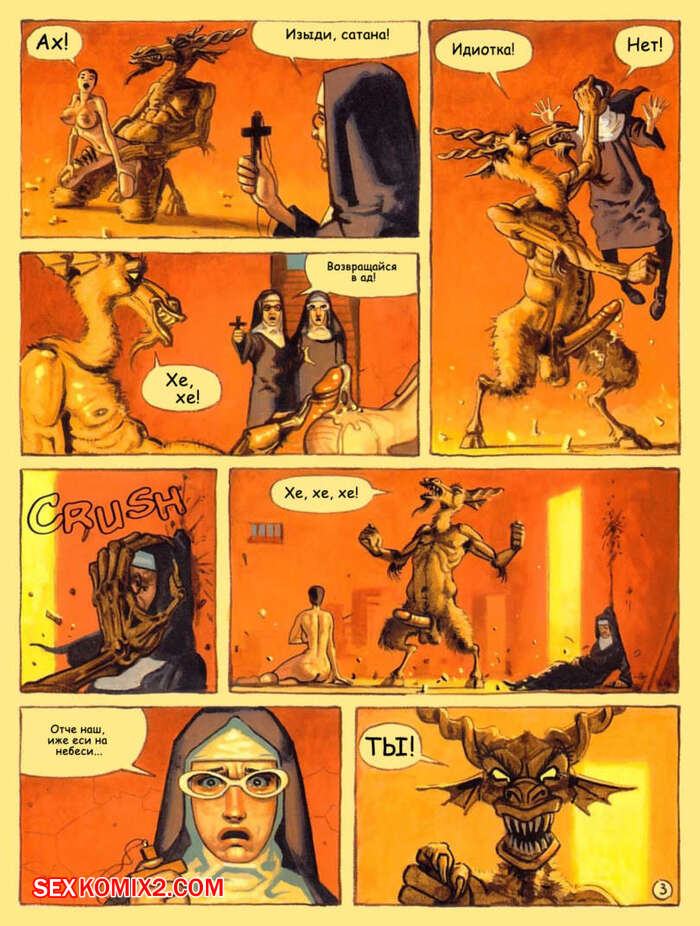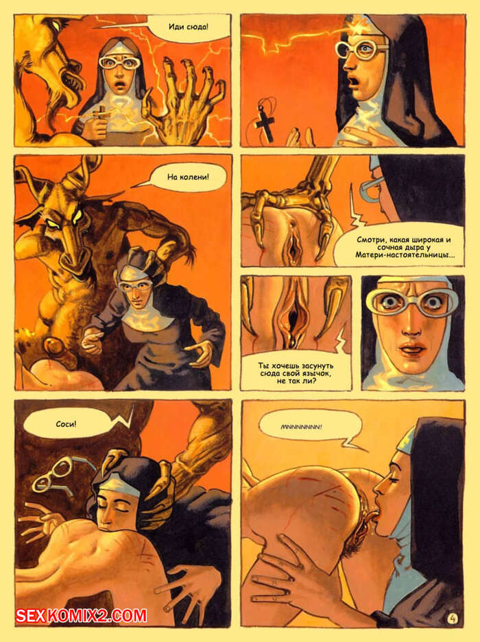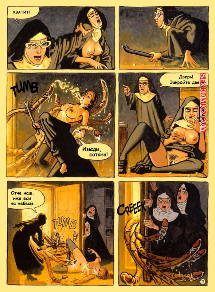 Порно комикс Адский монастырь. The Convent Of Hell В монастыре творятся адские дела. Горячие красотки монашки сталкиваются с настоящими монстрами с большими хуями, которые раздевают красоток и хорошенько их трахают.