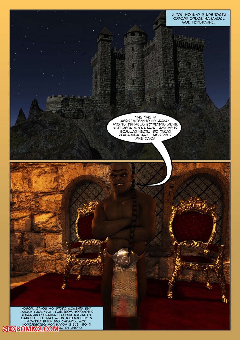 Порно комикс Жертвоприношение. Часть 1. The Sacrifice Горячая сисястая блондинка встретилась ночью в замке с черным парнем с огромным хуем. Она разделась перед ним и стала у него отсасывать, после чего дала ему себя выебать.