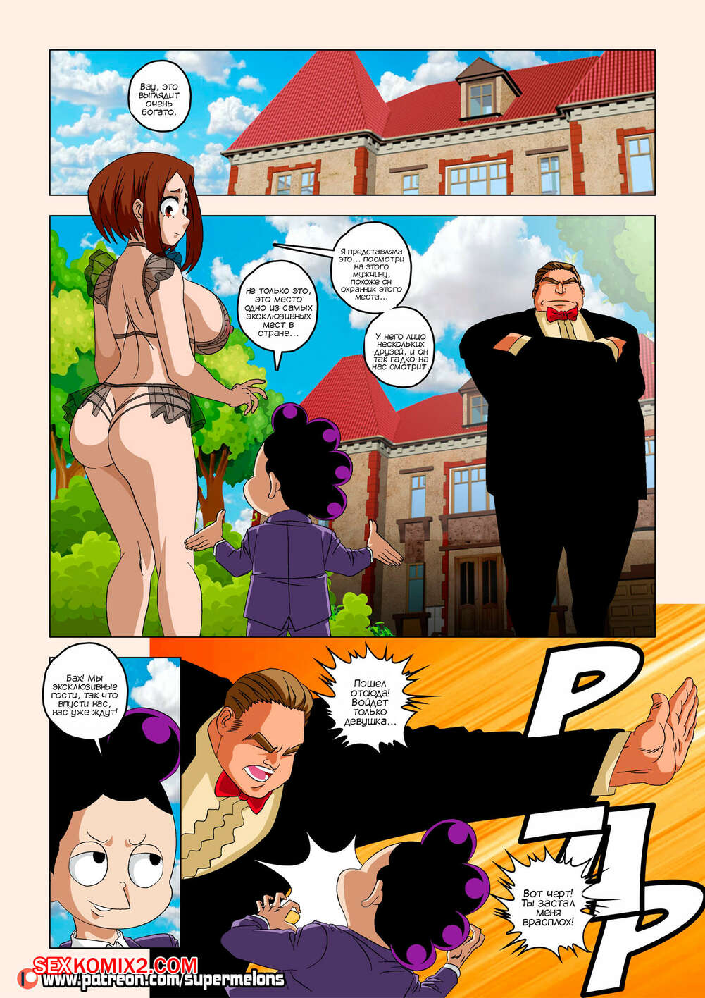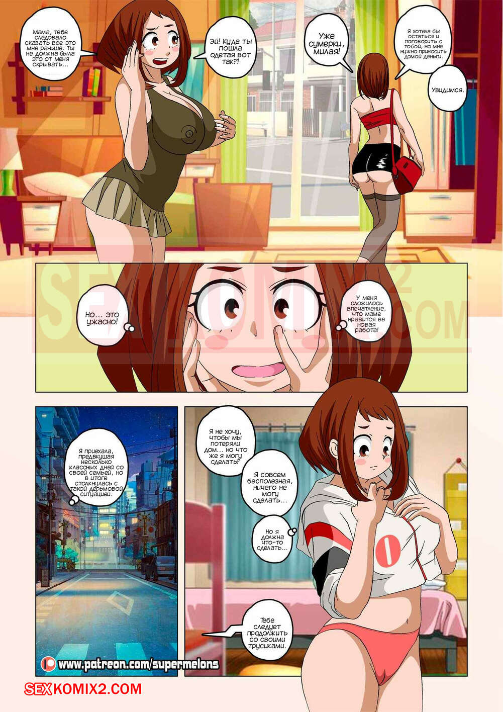 Порно комикс Академия. Вернуться домой. Back Home. Super Melons Горячая сисястая брюнетка поехала домой, используя выходные в академии. Там она застала свою сексуальную мамку за еблей с левым мужиком, после чего она узнала, что у ее семьи проблемы с деньгами.