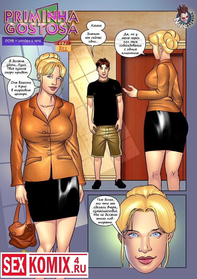 Читайте порно комикс «Горячая кузина. Часть 5». В этом секс комиксе вы увидите, как горячая тетя снова домогается своего парня. И совращает его на оральный секс, с этим их чуть не застукала кузина парня.