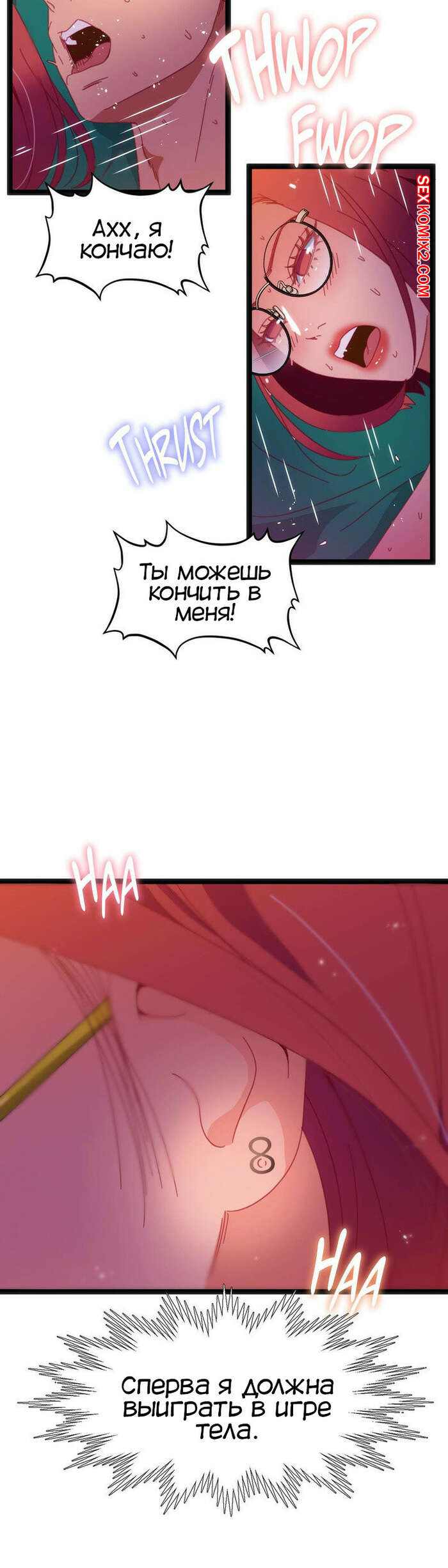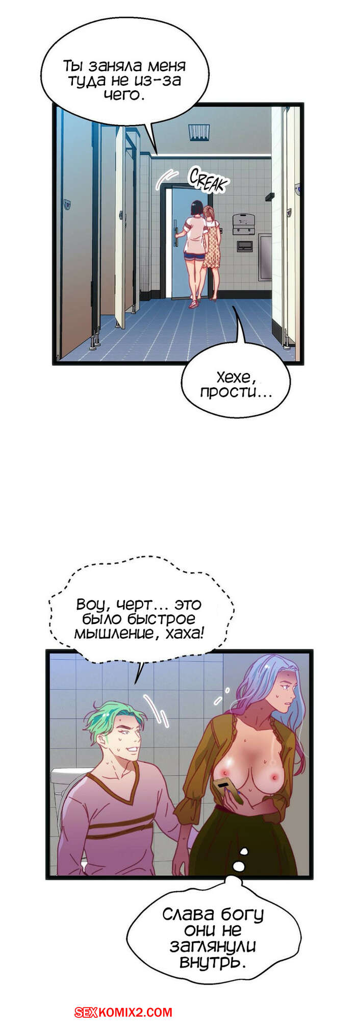 Порно комикс Игра с телом. Части 47 и 48. The Body Game Бору и Досунга чуть не спалили за еблей в женском туалете, но красотка все круто продумала. Ей пришло в голову что не так с числом Досунга и она стала более яростно его трахать и нашла его верное число.