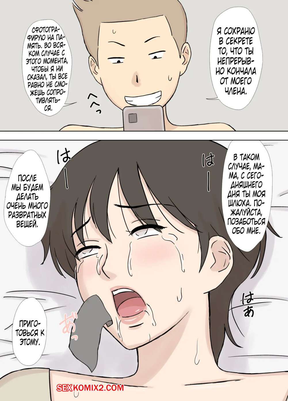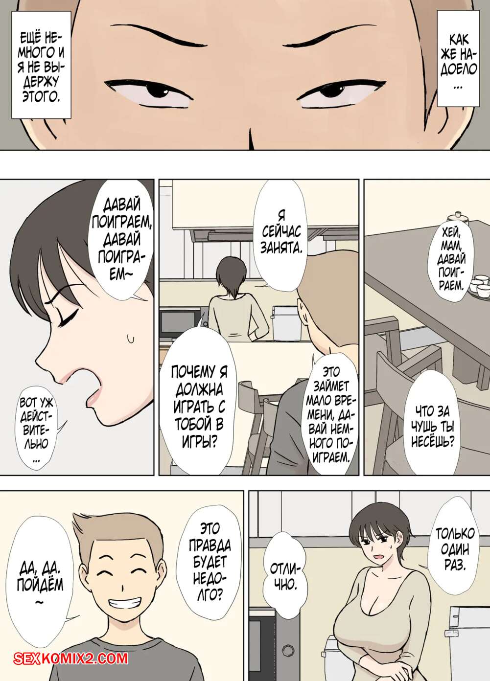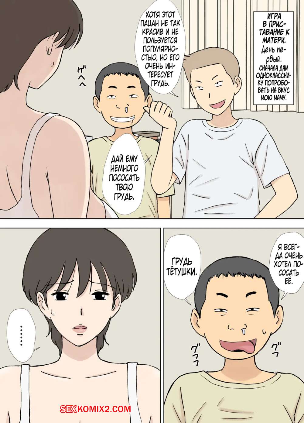 Порно комикс Специальное издание. Падшая мать. Numa Haha Wanpaku Musuko No Mama Ijiri Сисястая милфа брюнетка чертовски возбуждена и хочет трахаться. Она стала соблазнять своего сына своим шикарным телом и начала сосать его большой хуй, после чего дала ему себя хорошенько выебать.