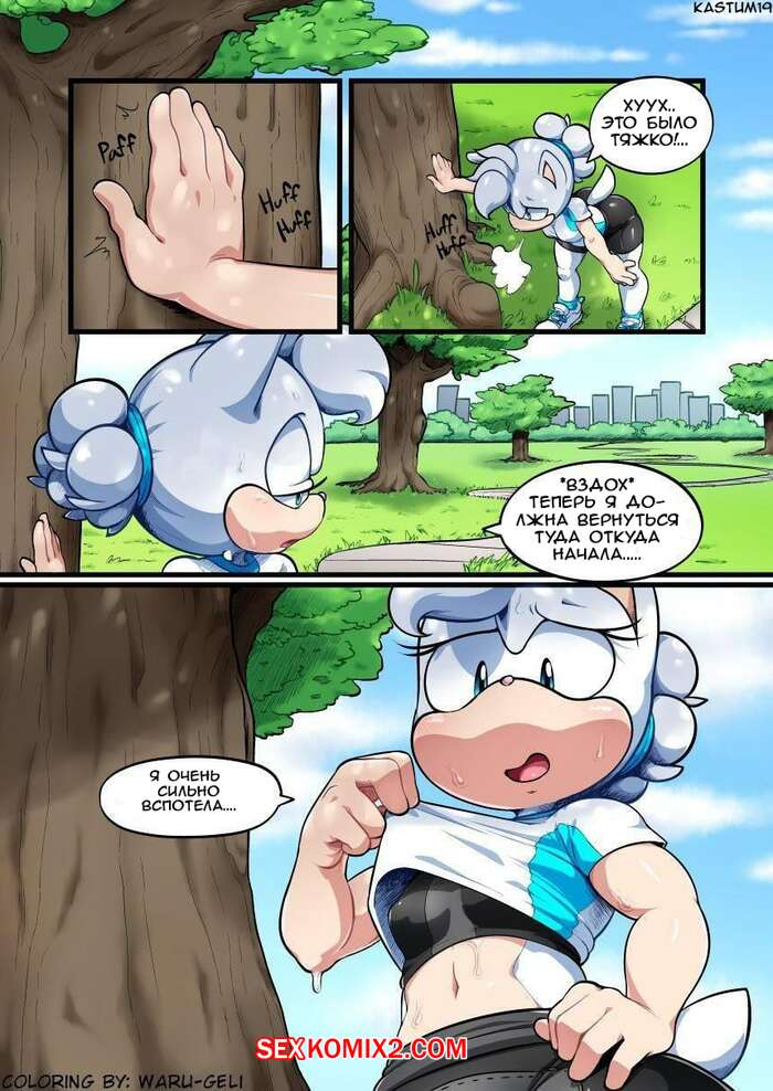 Порно комикс Тренировка Софи Горячая красотка блондинка вышла на пробежку в парке и очень вспотела. Она остановилась под деревом передохнуть, но поняла, что очень возбуждена, и стала ласкать свою пизденку.