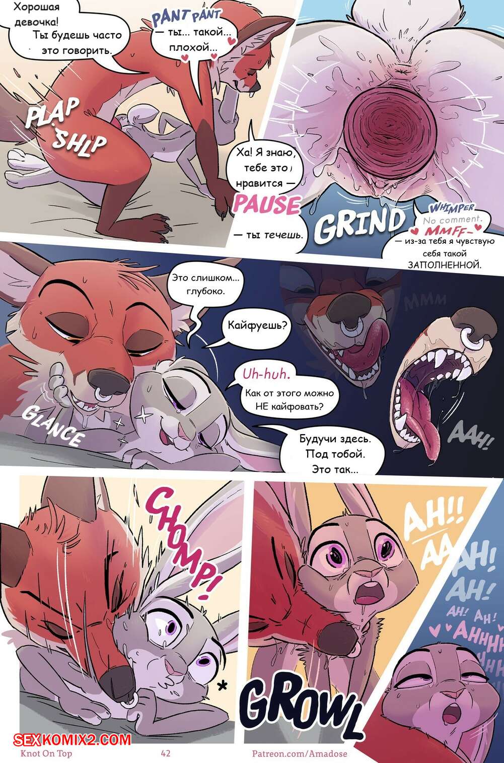 Порно комикс Любовники в Зверополисе. Часть 3. Узел сверху. Zootopia Cuckin. Knot on top Горячая красотка крольчиха очень возбуждена и хочет трахаться. Она раздевается перед своим дружком и сосет его большой хуй, после чего дает ему себя хорошенько выебать.