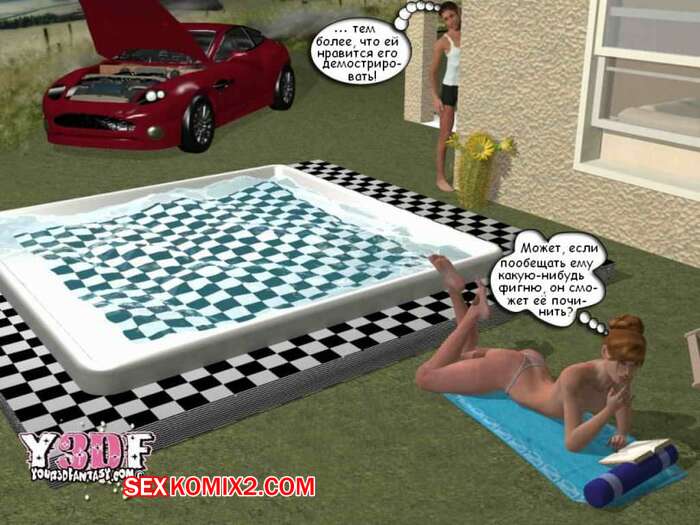 Порно комикс В душе. Y3DF. Bath Парень просто без ума от шикарного тела своей мамки. Пока она загорала у бассейна, он подошел к ней и выебал ее в ротик, кончив на нее. А когда милфа уснула на диване, парень ее хорошенько выебал.