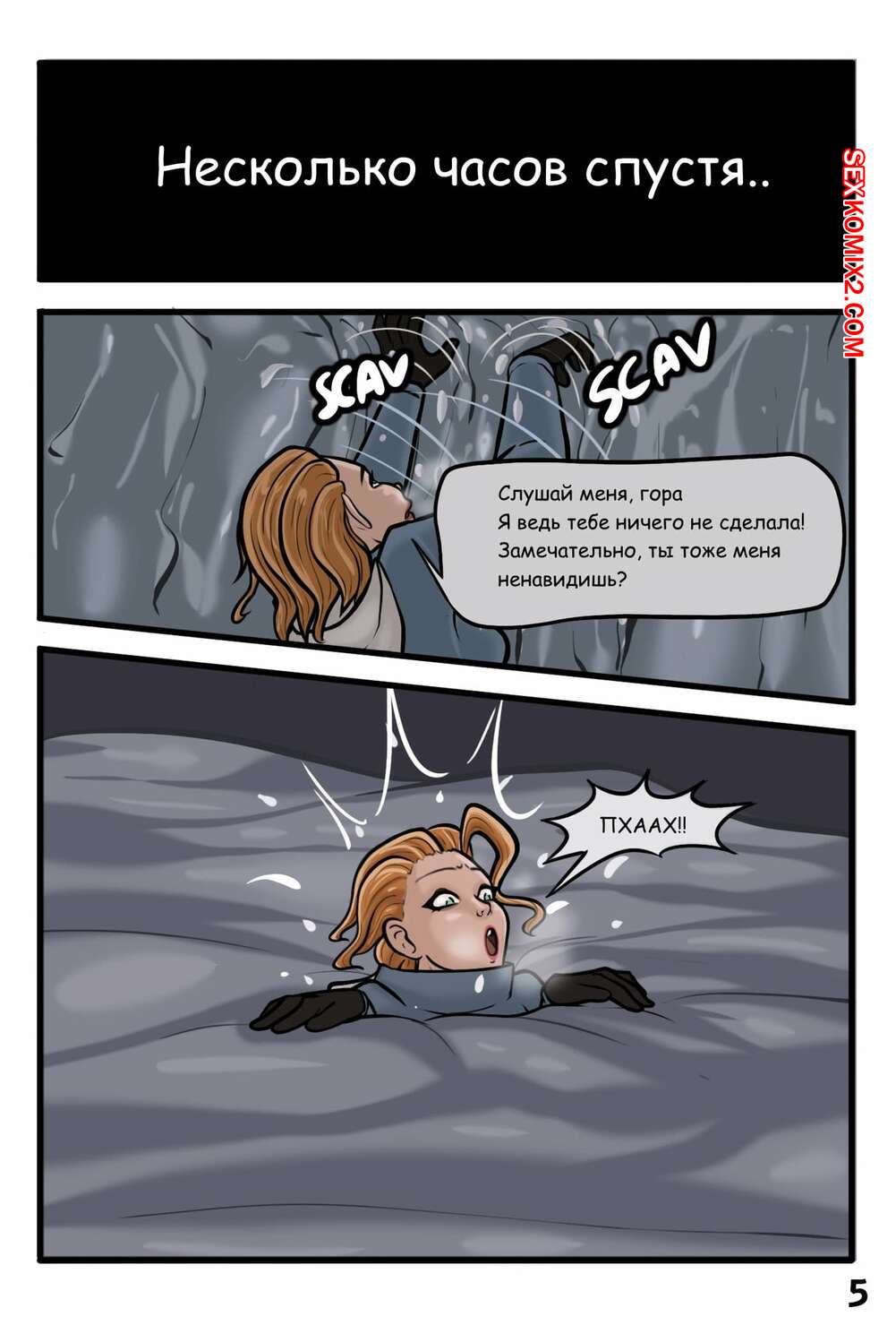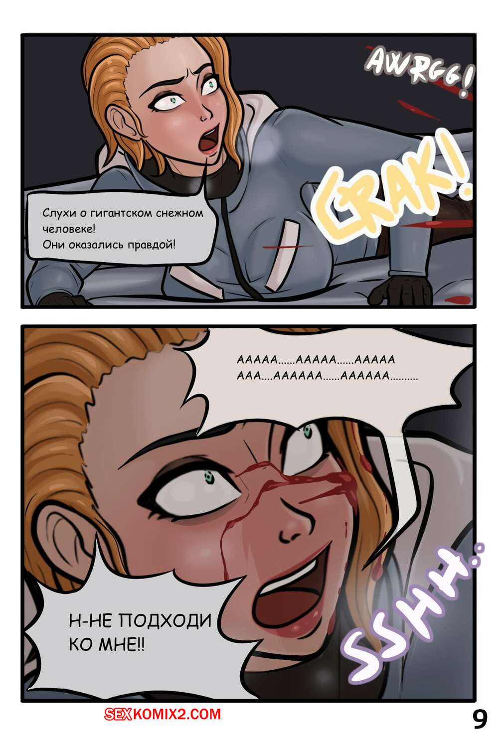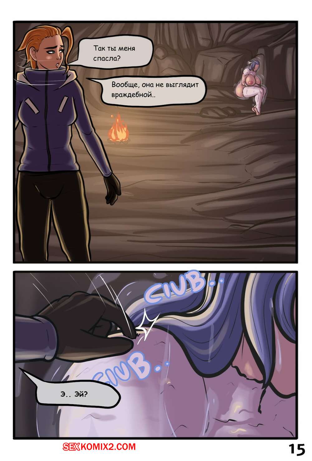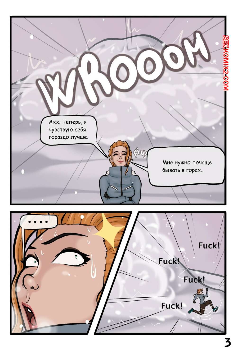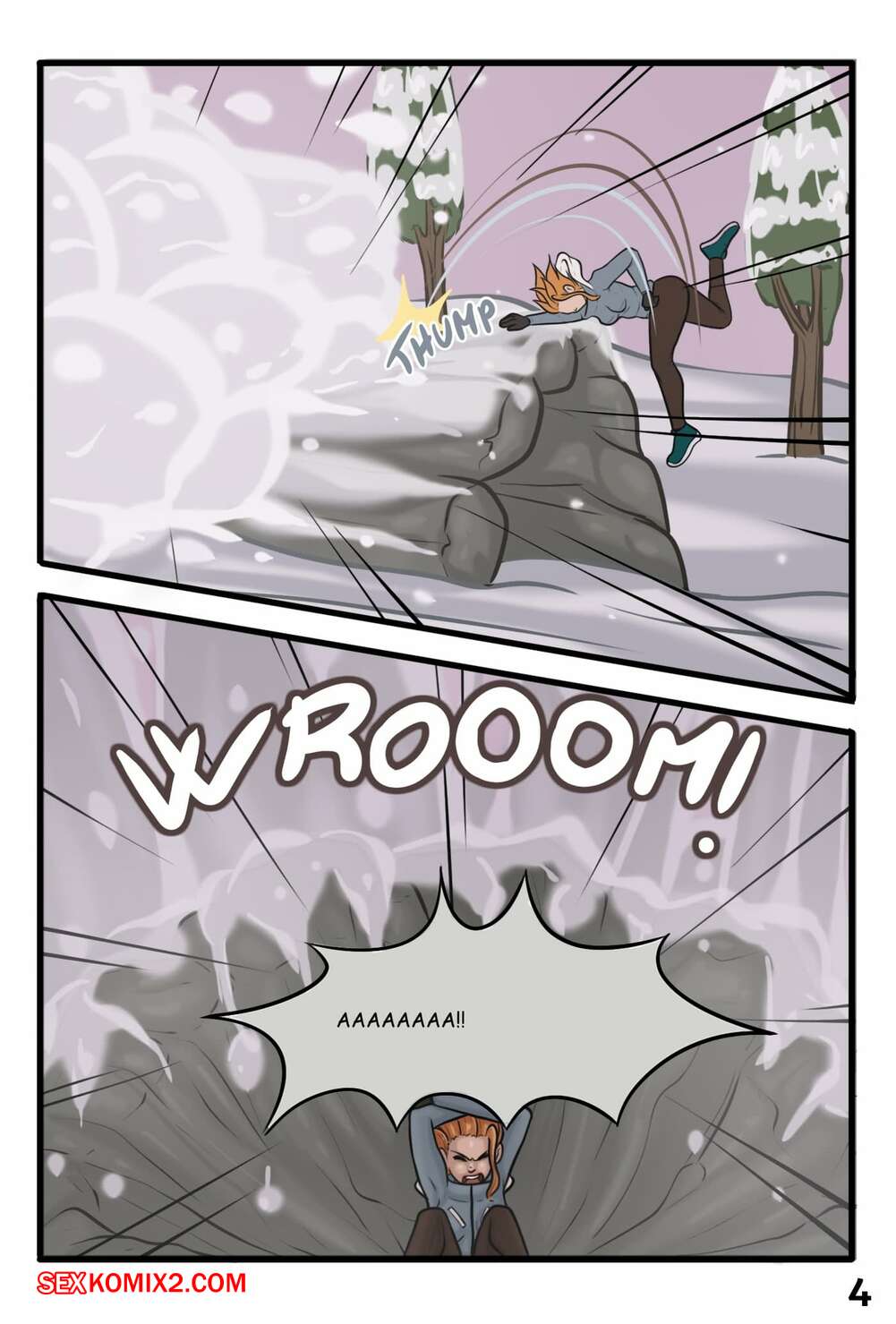 Порно комикс Гигантская снежная мамочка. Abominable Snow Mother Горячая сисястая брюнетка попала под снежную лавину, но ее спасла сисястая красотка. Девушка решила ее отблагодарить и стала сосать большой хуй защитницы, после чего дала ей себя выебать.