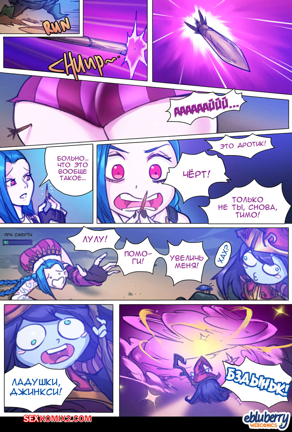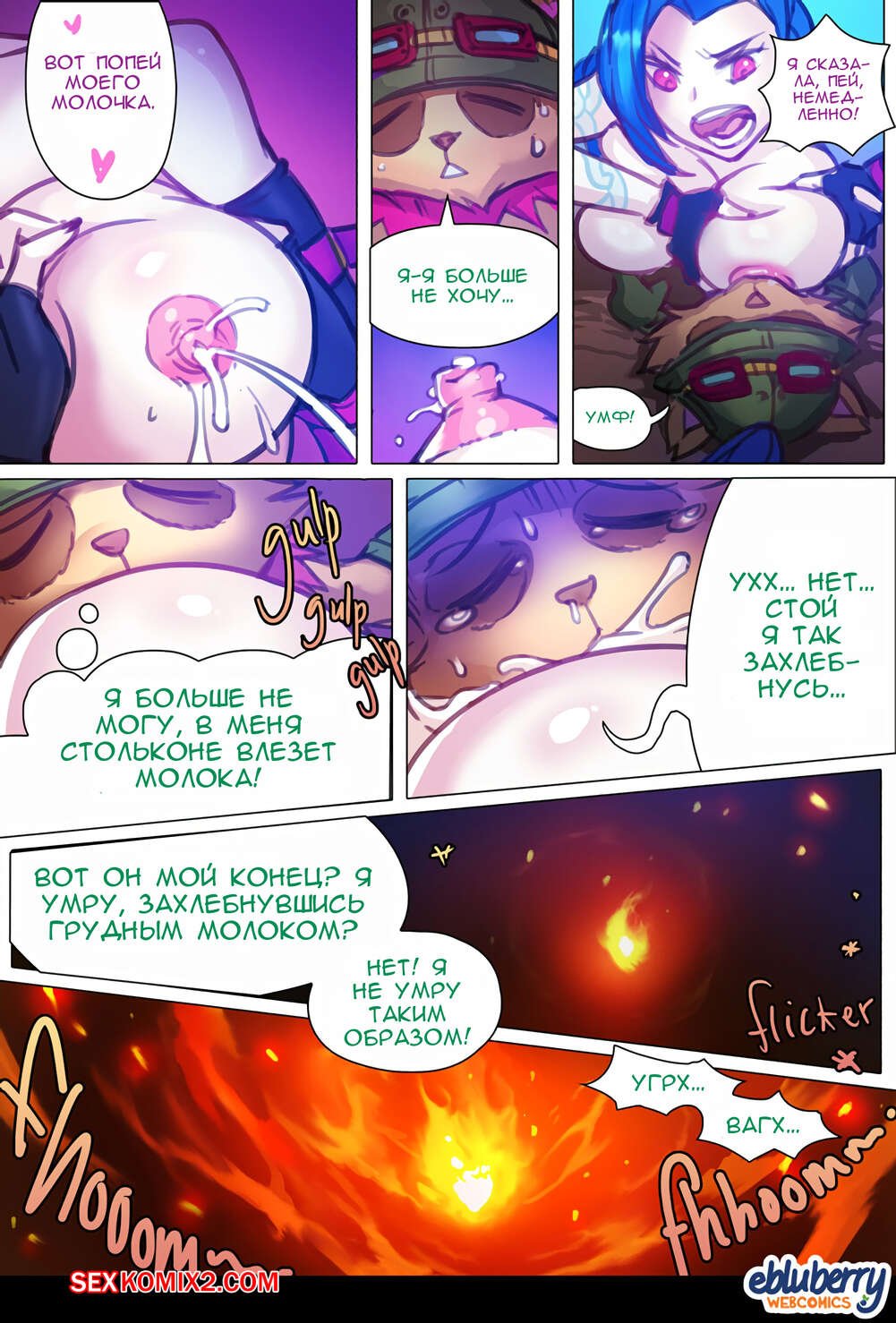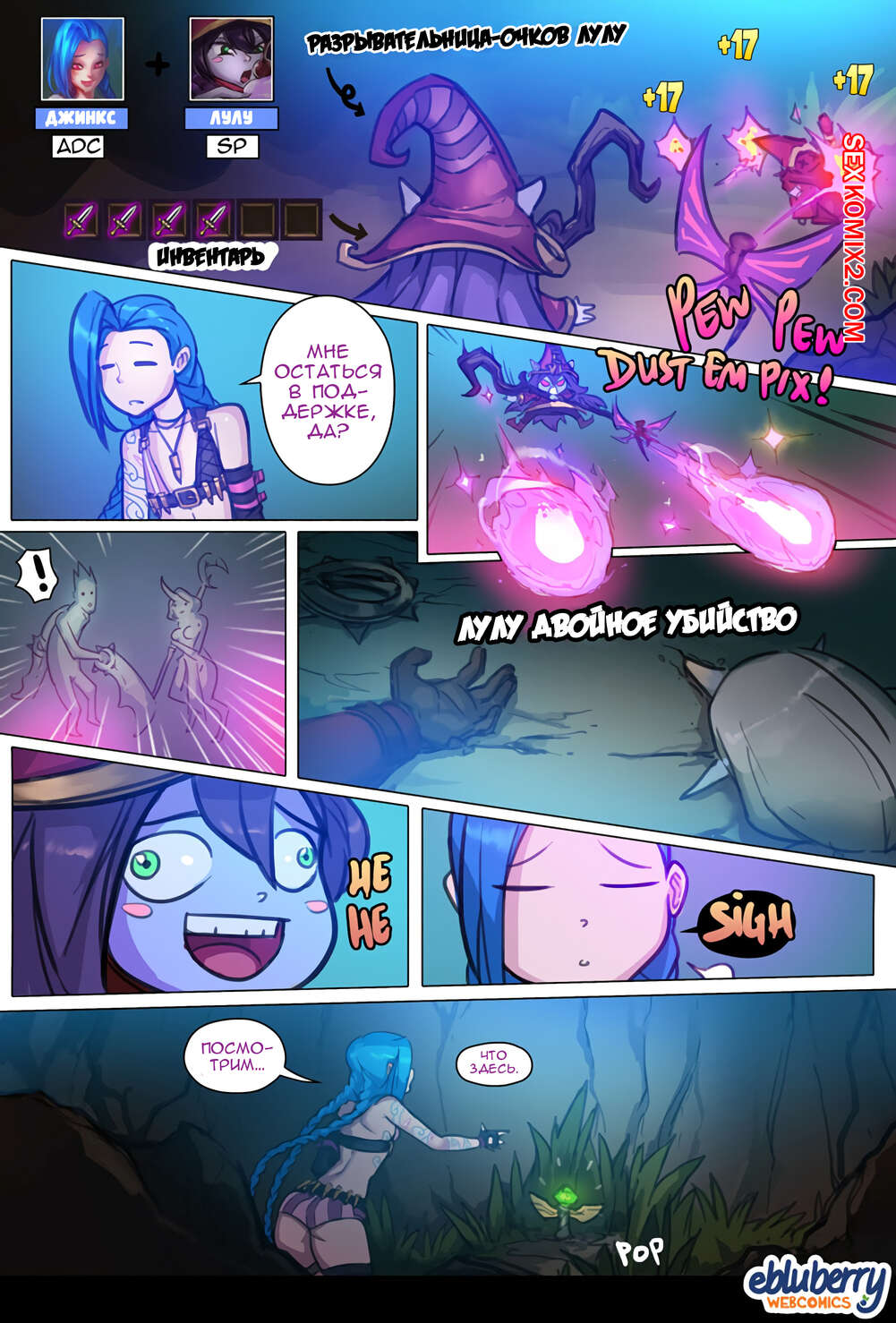 Порно комикс League Of Legends. Джинкс и Лулу и другие. Jinx x Lulu x Others. Ebluberry На горячую сисястую красотку напал маленький монстрик с большим хуем, который выебал соски красотки, после чего на нее напал другой монстр и хорошенько выебал пизденку сучки.