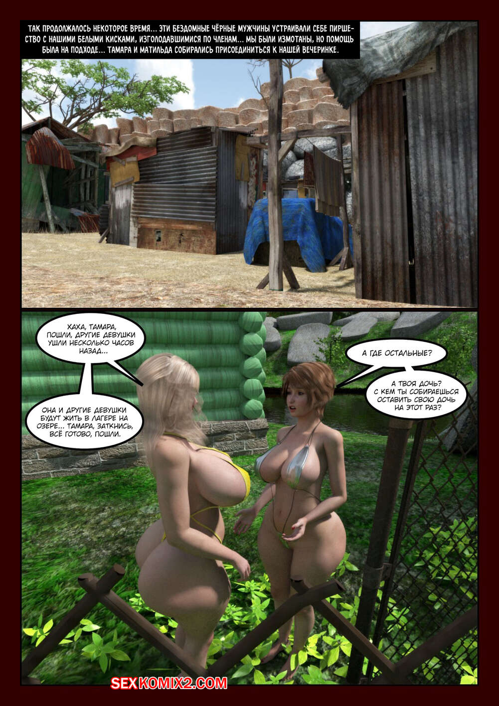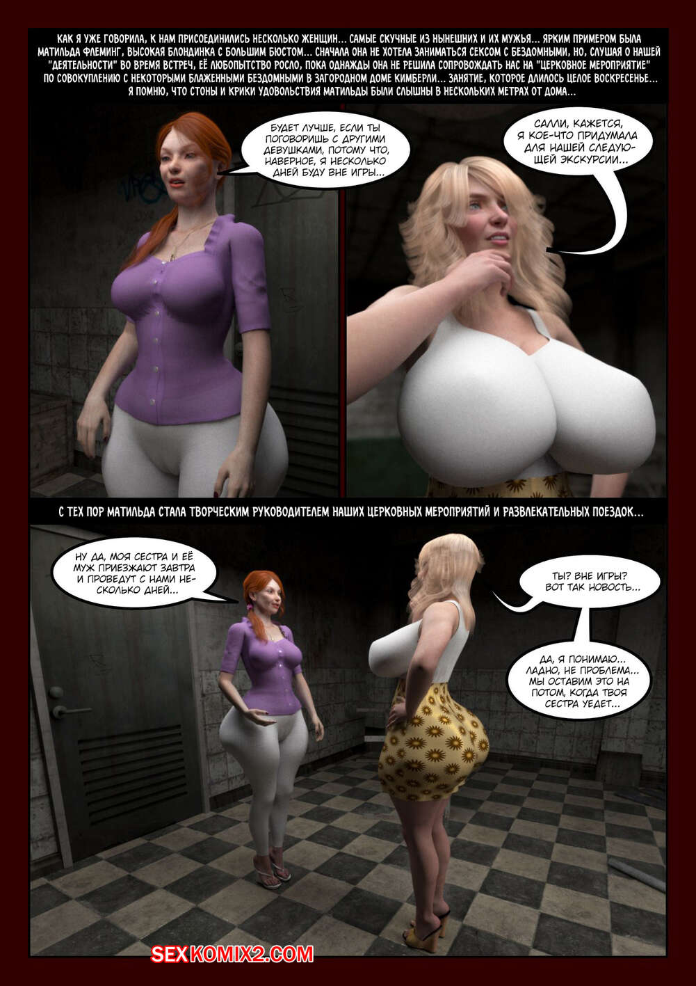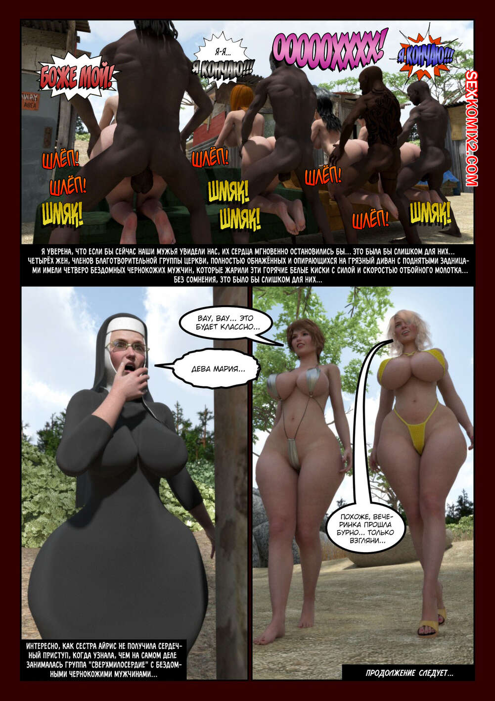Порно комикс Сверхмилосердие. Часть 2. Extra Charity. Moiarte Сисястые красотки милфы не удовлетворены еблей со своими мужьями, поэтому они регулярно встречаются с темнокожими парнями, чтобы отсосать их большие хуи и дать им себя выебать.