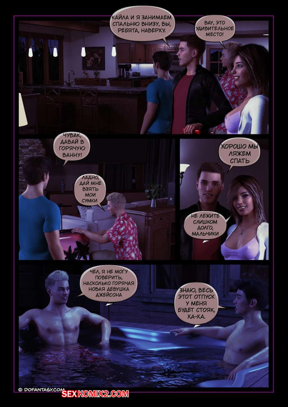 Порно комикс Летние каникулы Кайлы. Часть 1. Теряя контроль. Kayla Summer Break Молодая девушка поехала со своим парнем, его кузеном и его другом в загородный дом с бассейном. Там она решила весело провести ночь с парнем и стала у него отсасывать, после чего дала ему себя выебать.