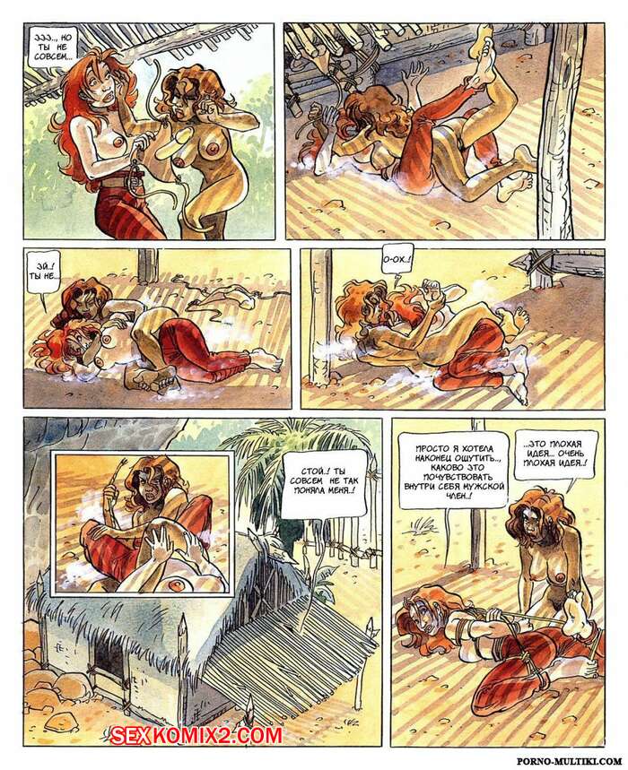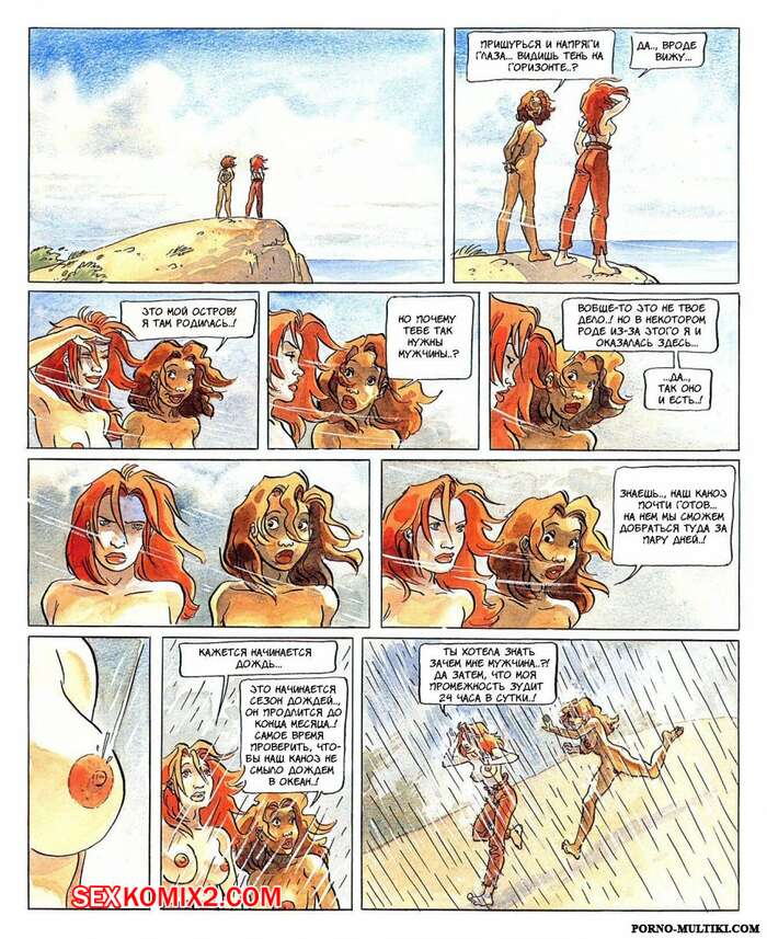 Порно комикс Робинзония Сисястая рыжая красотка попала на необитаемый остров, где она познакомилась с другой красоткой. Девушки стали проводить время вместе, а когда на остров приплыли парни, они сразу решили с ними поебаться.