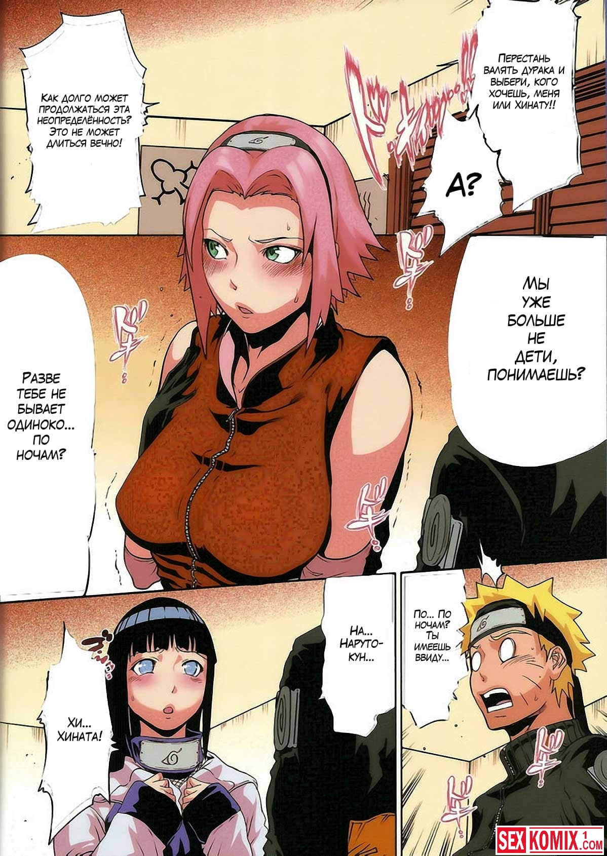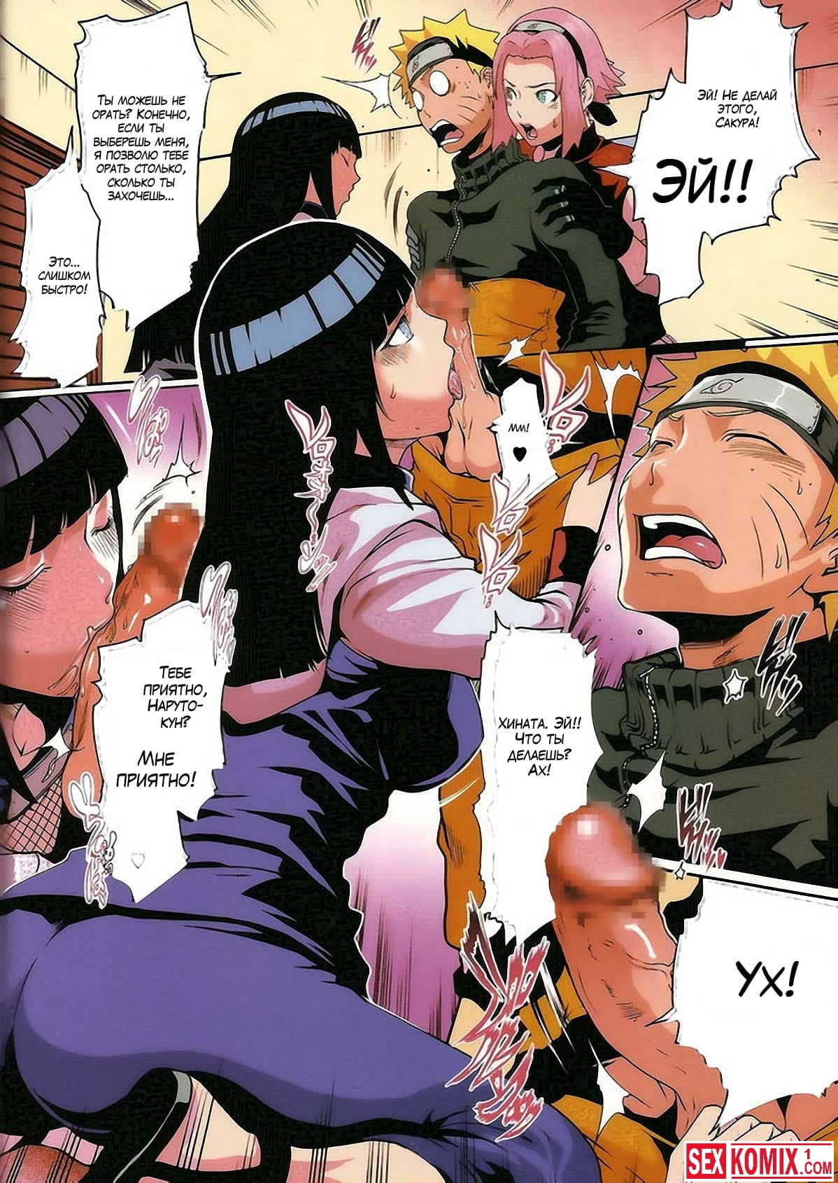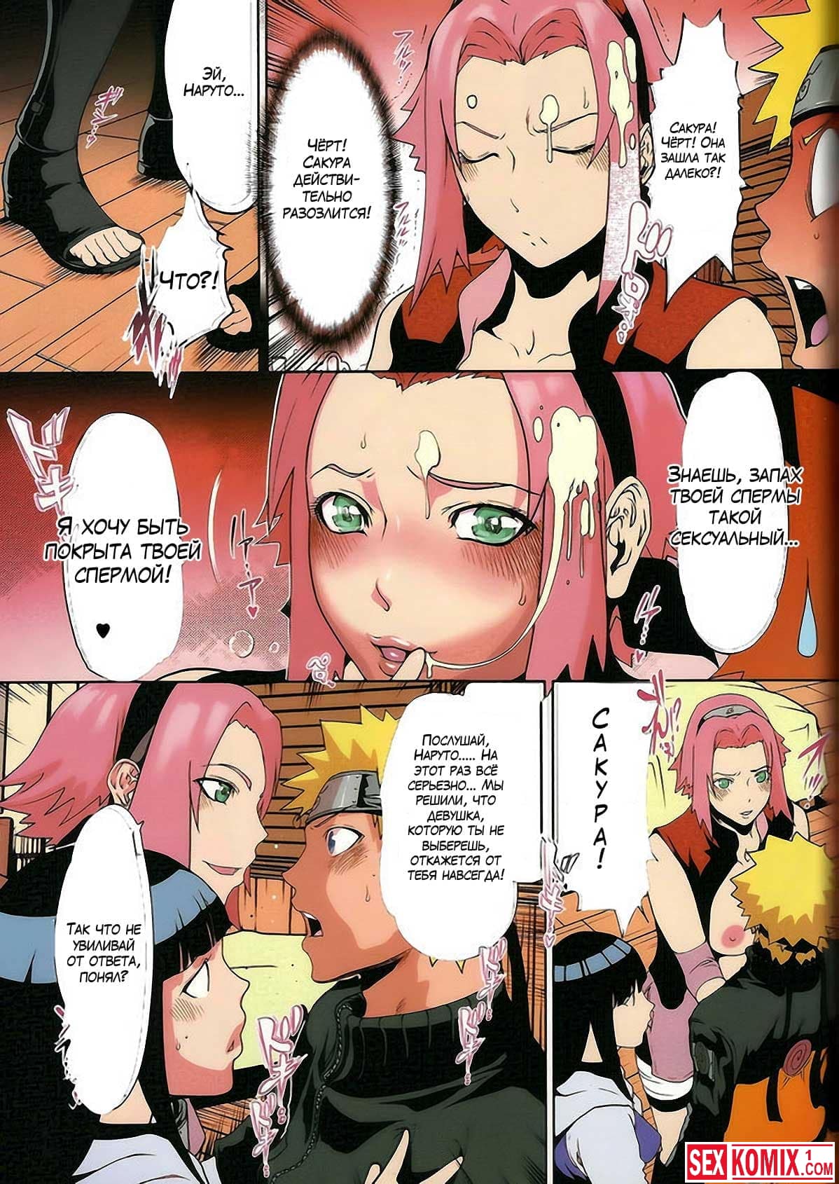 Порно комикс Любовь Наруто. Часть 6. Сакура пришла вместе с Хинатой к Наруто, чтобы ему предъявить то, что он не считается с чувствами девушек, и трахает их в тайне друг от друга. Девушки решают наказать его и устраивают ему секс втроем.