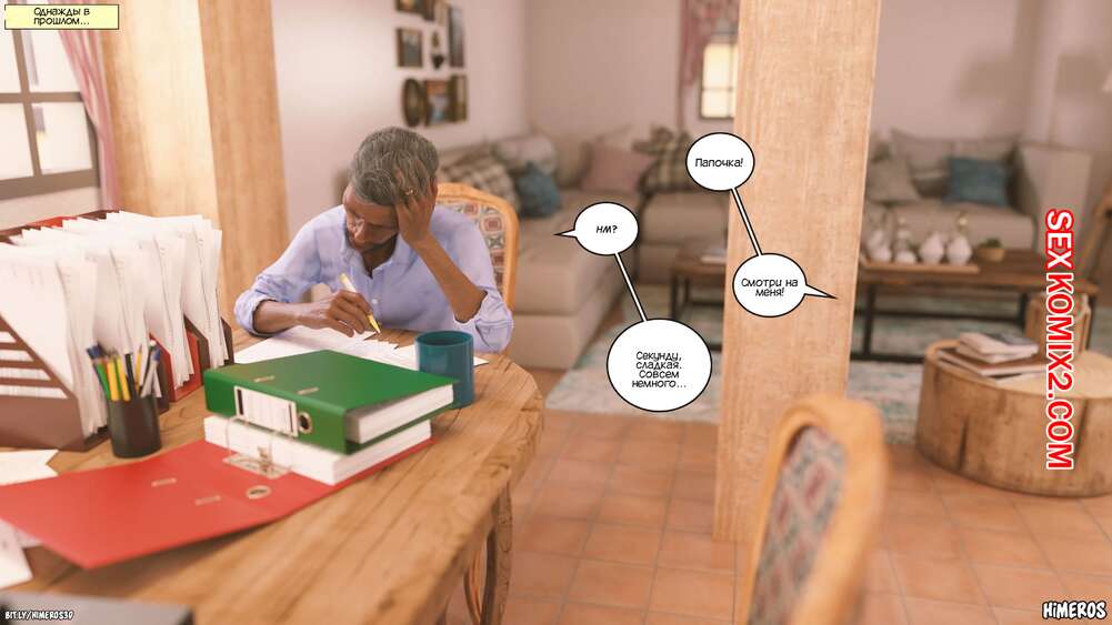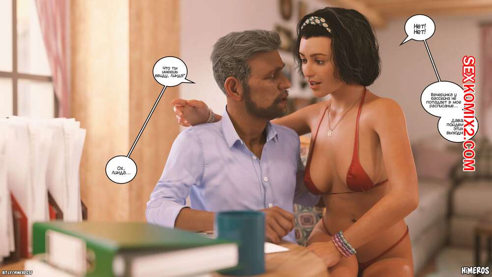 Порно комикс Список желаний. Часть 6. Bucket List. Himeros3D Сисястая милфа брюнетка застала своего отца за дрочкой и очень возбудилась, поэтому решила помочь ему расслабиться. Она усадила его на кровать и стала дрочить его большой хуй, чтобы помочь ему кончить.