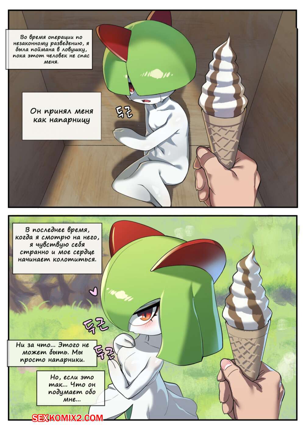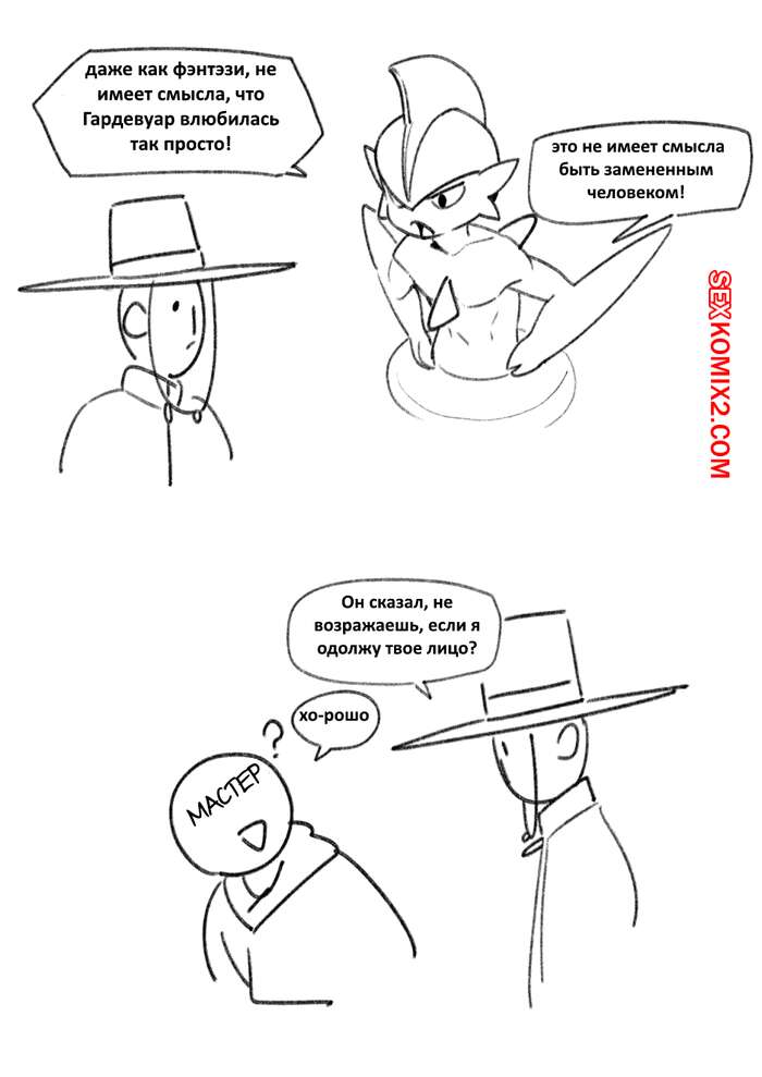 Порно комикс Покемоны. The Gardevior that loved her trainer too much Горячая сисястая красотка покемон была очень возбуждена и решила повеселиться со своим дружком. Она разделась перед ним и стала сосать его большой хуй, после чего дала ему себя выебать.