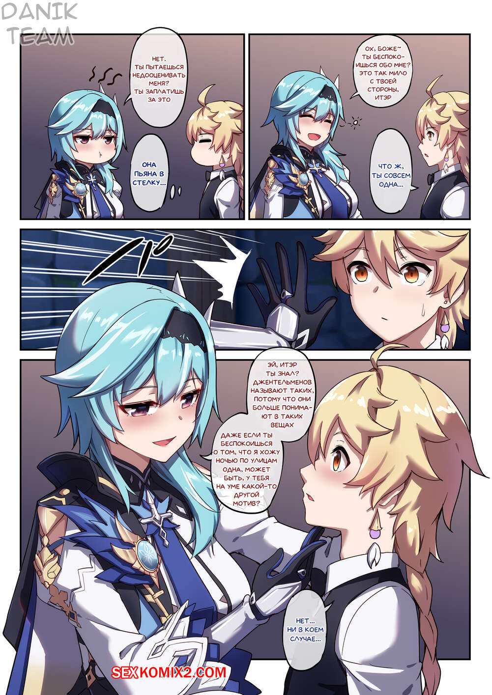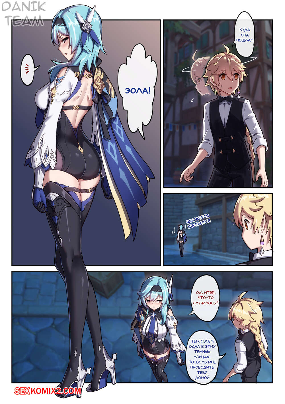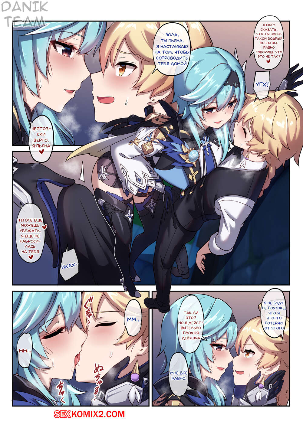 Порно комикс Genshin Impact. Пьяная выходка Эолы. Eulas Drunken Escapade Горячая сисястая блондинка была пьяна и решила повеселиться со своим дружком. Она разделась перед ним и стала сосать его большой хуй, после чего дала ему себя хорошенько выебать.