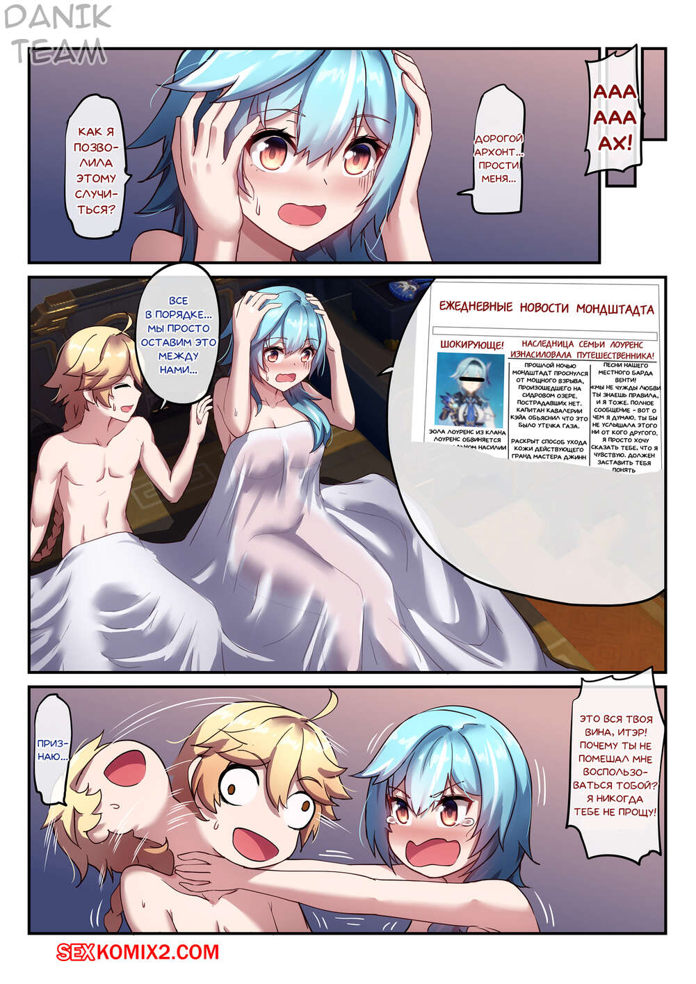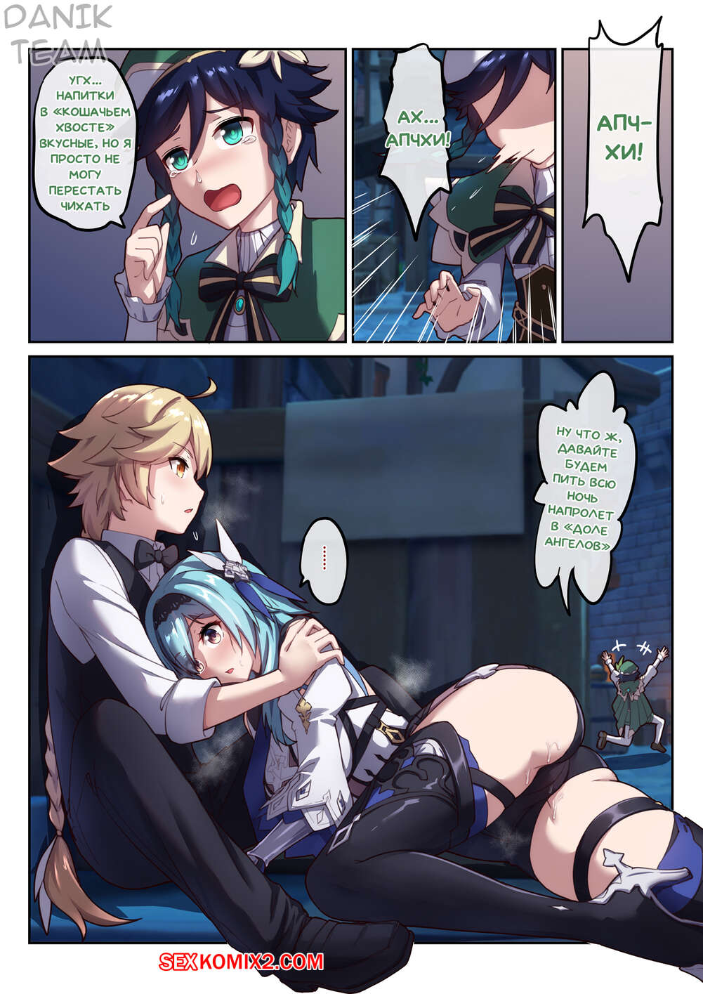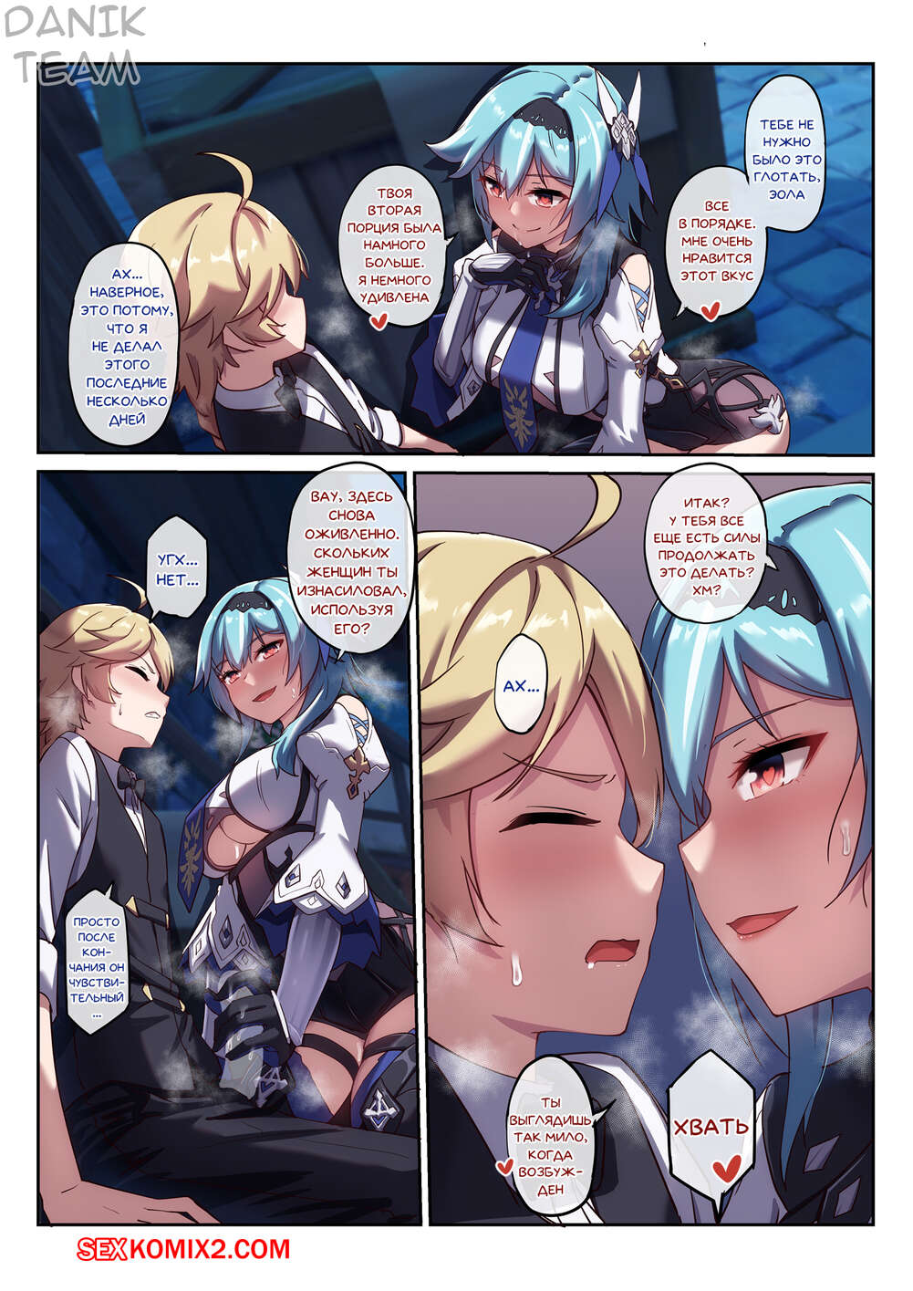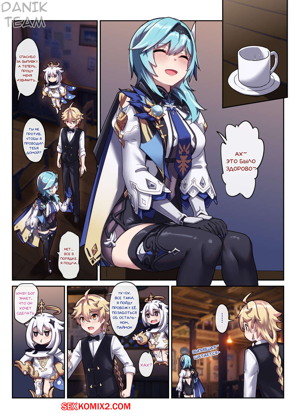 Порно комикс Genshin Impact. Пьяная выходка Эолы. Eulas Drunken Escapade Горячая сисястая блондинка была пьяна и решила повеселиться со своим дружком. Она разделась перед ним и стала сосать его большой хуй, после чего дала ему себя хорошенько выебать.