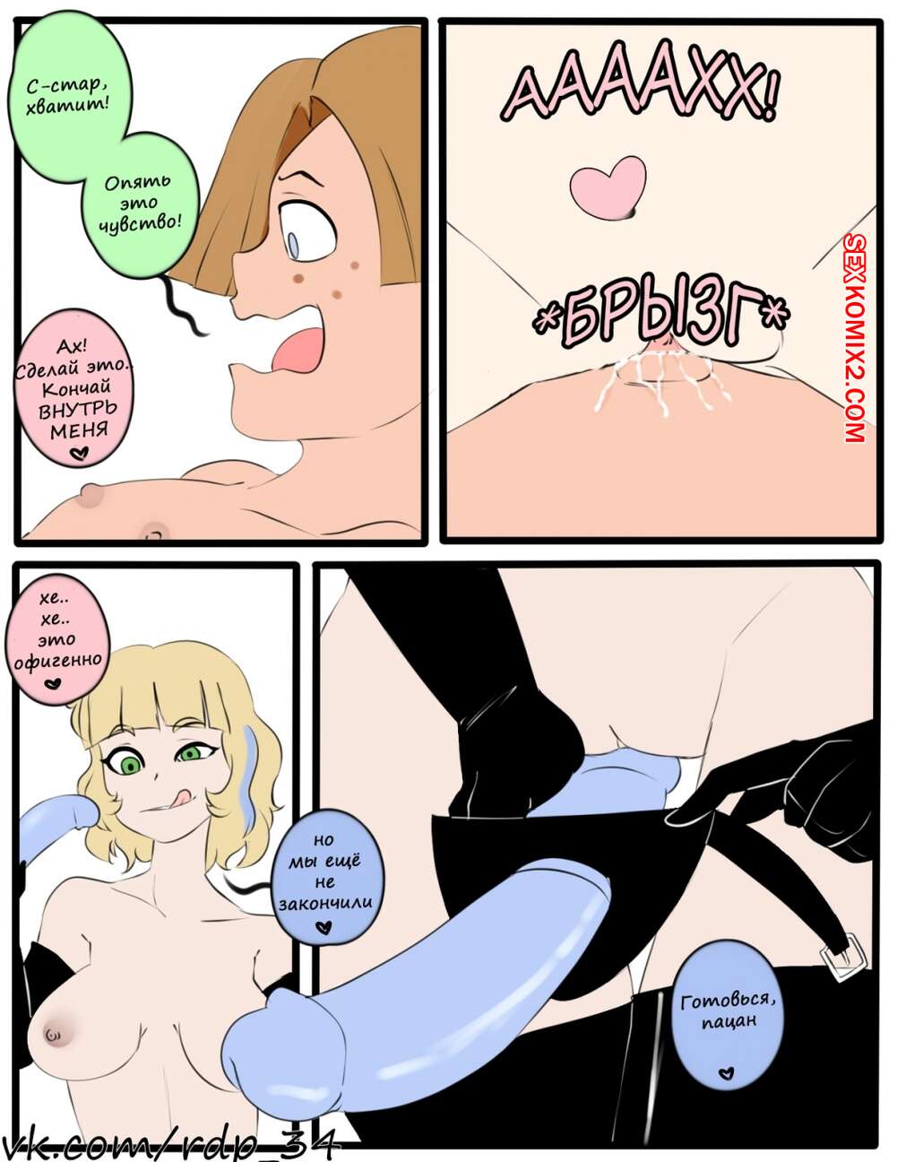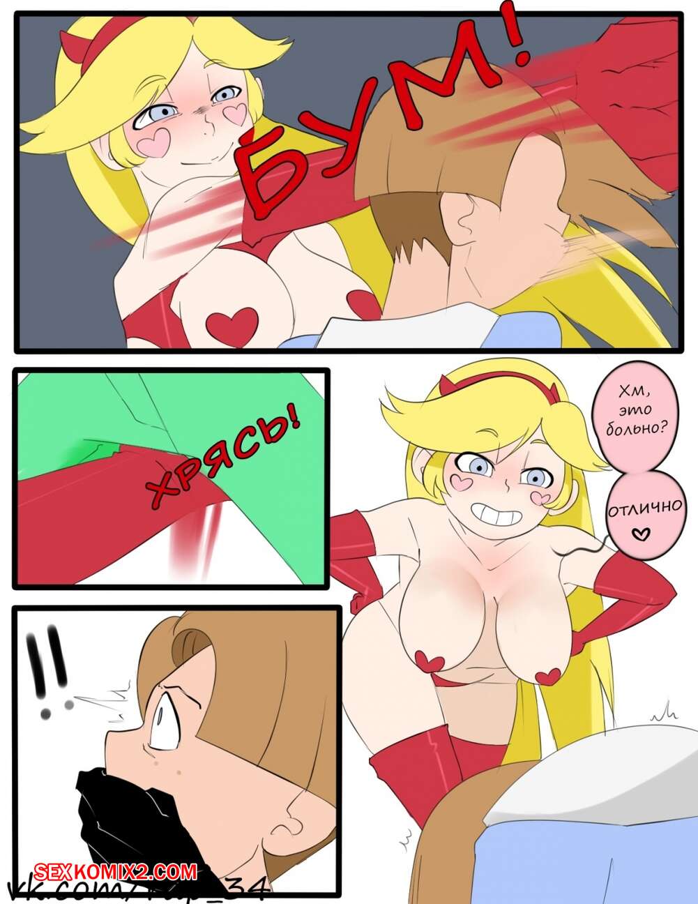 Порно комикс Стар против. Время расплаты. Стар против Сил Зла Горячая сисястая блондинка была очень возбуждена и решила повеселиться со своим дружком. Она разделась перед ним и дала ему себя трахнуть, после чего сама выебала ее страпоном.