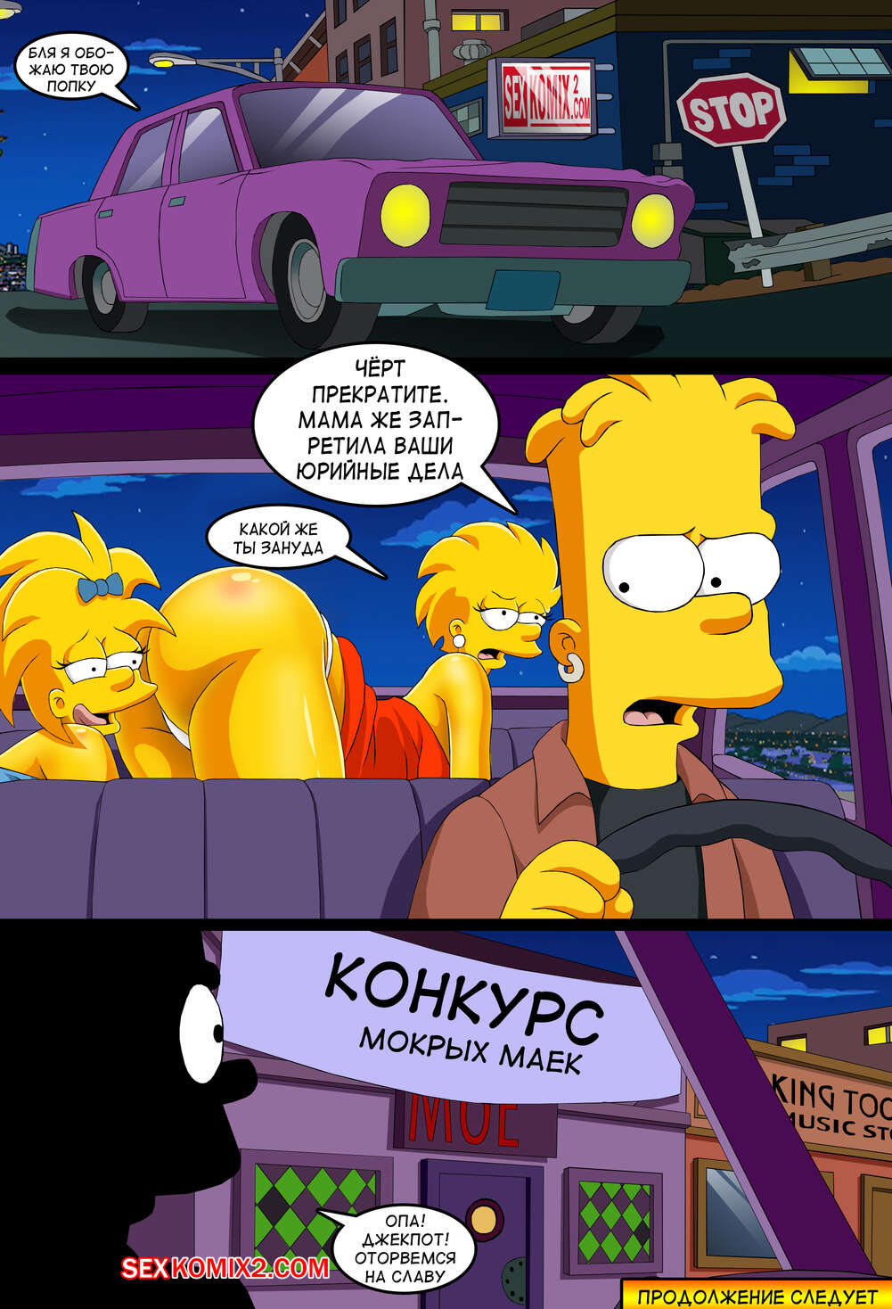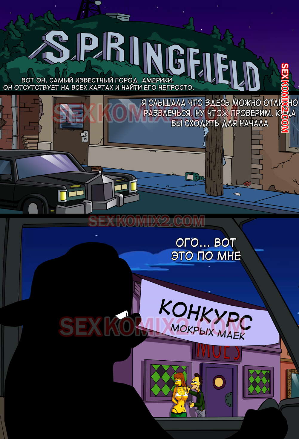 Порно комикс Симпсоны. Приключения Анастасии. Встречай меня Спрингфилд. by sexkomix2.com. Представляем уже второй комикс от нашей студии. Белокурая красотка Анастасия, прогуливаясь по Спрингфилду, увидела вывеску "Конкурс мокрых маек" и решил себя попробовать в нем. Она легко может претендовать на главный приз с такими та формами.