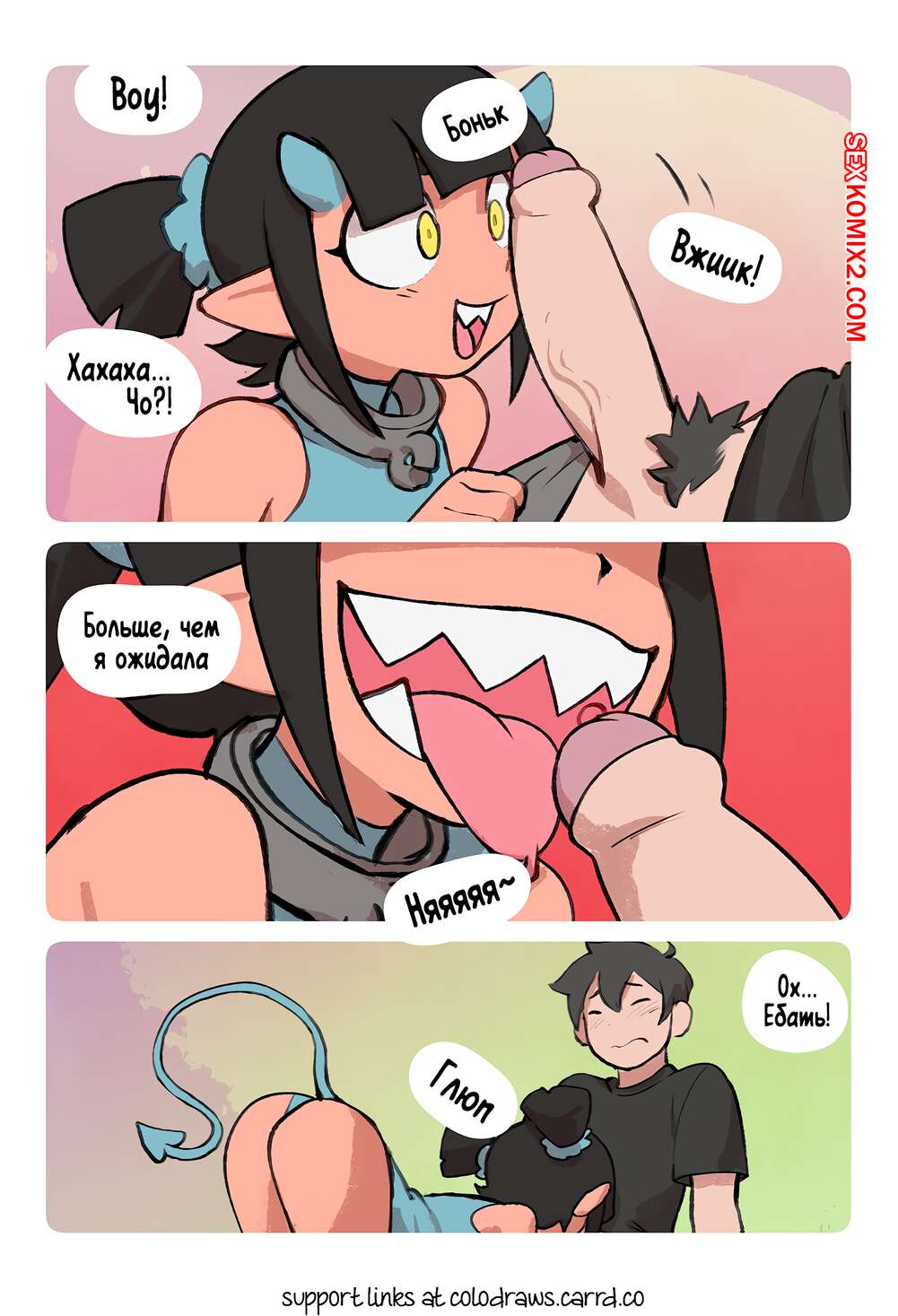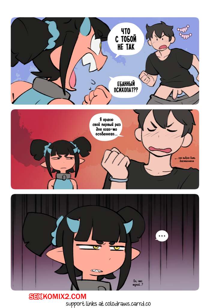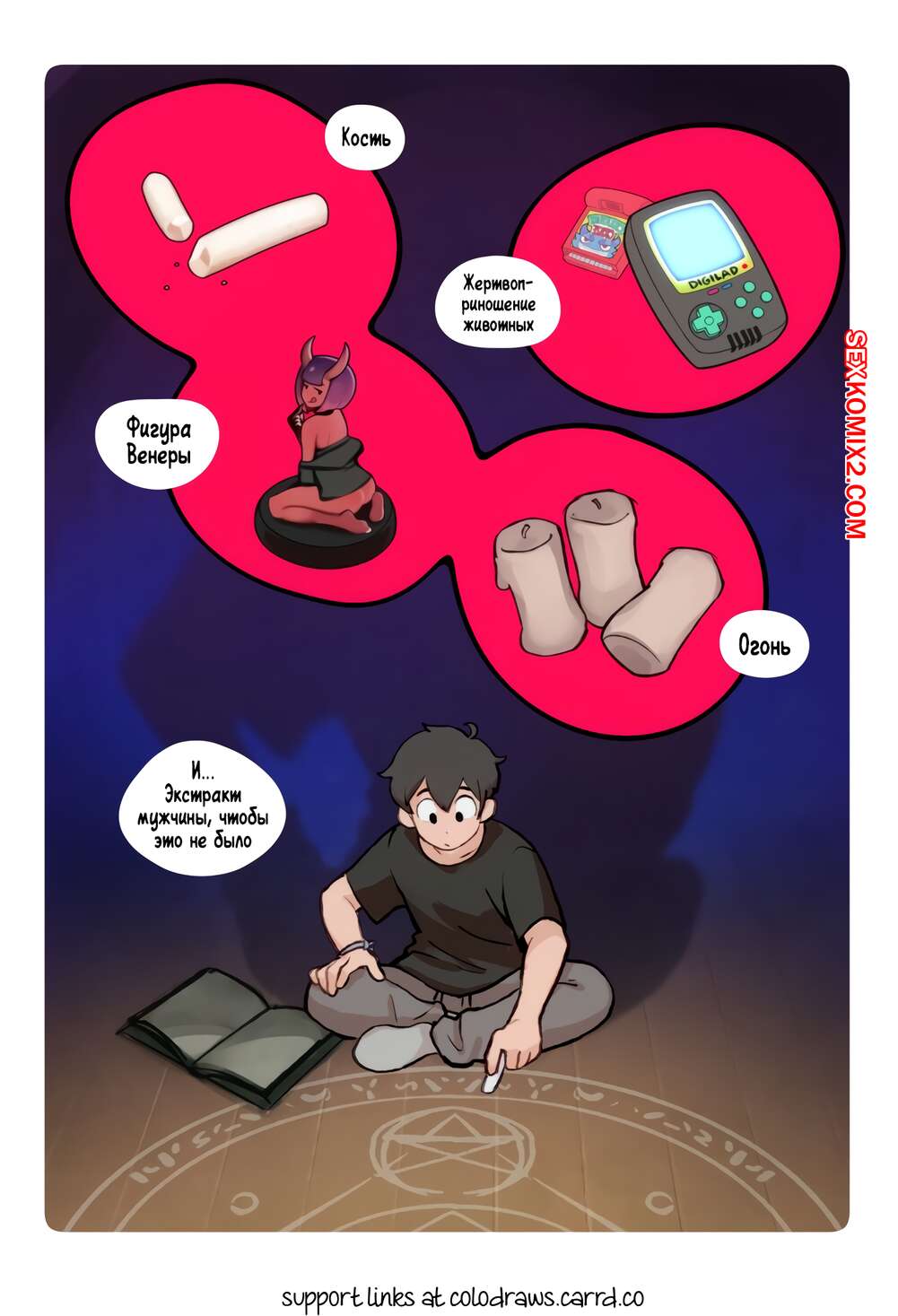 Порно комикс Сладкий. Часть 1. SweetHex. The Webcomic. Парень устроил ритуал призыва, и призвал горячую демоницу. Красотку набросилась на него чтобы отблагодарить за освобождение из ада