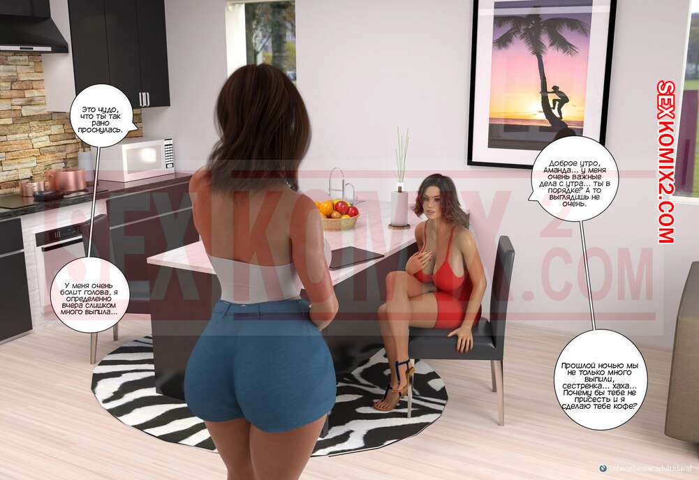 Порно комикс Удовлетворение Потребностей. Часть 7. Satisfying Needs. Daval3D Аманда проснулась с утра и обнаружила свою сестру на спящей и за компьютером на кухне. Девушка рассказала сестре, что загрузила их видео в интернет, и теперь у них много денег.
