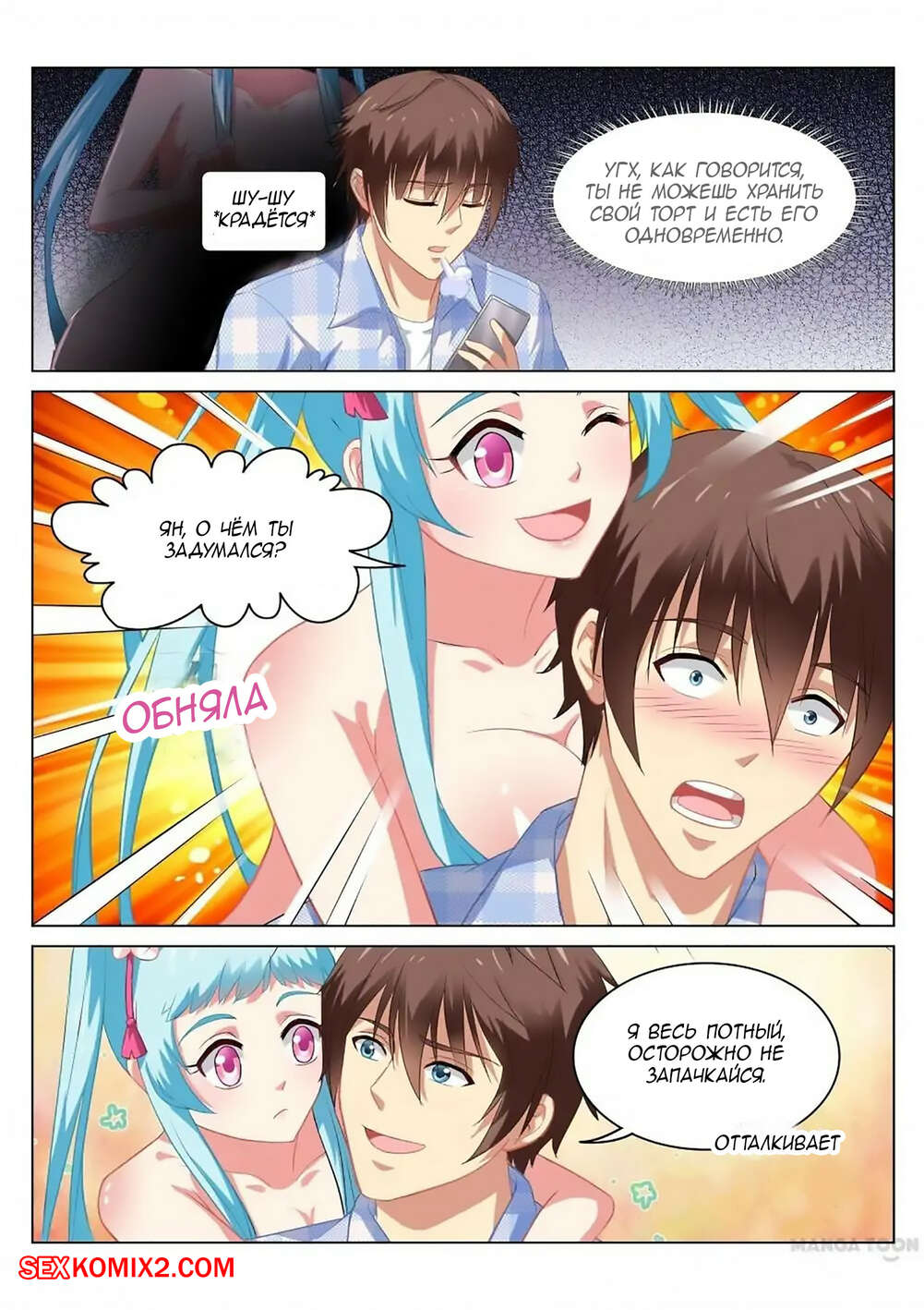 Порно комикс Очень просто и очень запутанно. Части 58 и 59 и 60. So Pure So Flirtatious Горячая сисястая брюнетка продолжает подкатывать к парню и все время ходит вместе с ним. Девушка выставляет свое тело напоказ, чтобы он ее хорошенько выебал и доставил ей огромное удовольствие.