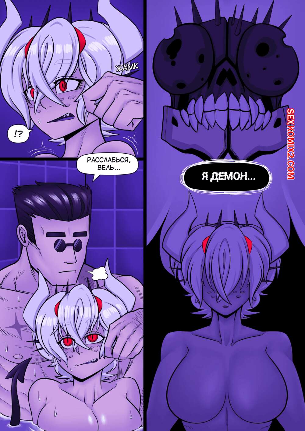 Порно комикс Helltaker. Красавица и Бездна. Beauty And The Abyss . Anikikiart Горячая сисястая брюнетка очень возбуждена и хочет трахаться со своим дружком. Она разделась перед ним и стала сосать его большой хуй, после чего дала ему себя хорошенько выебать.