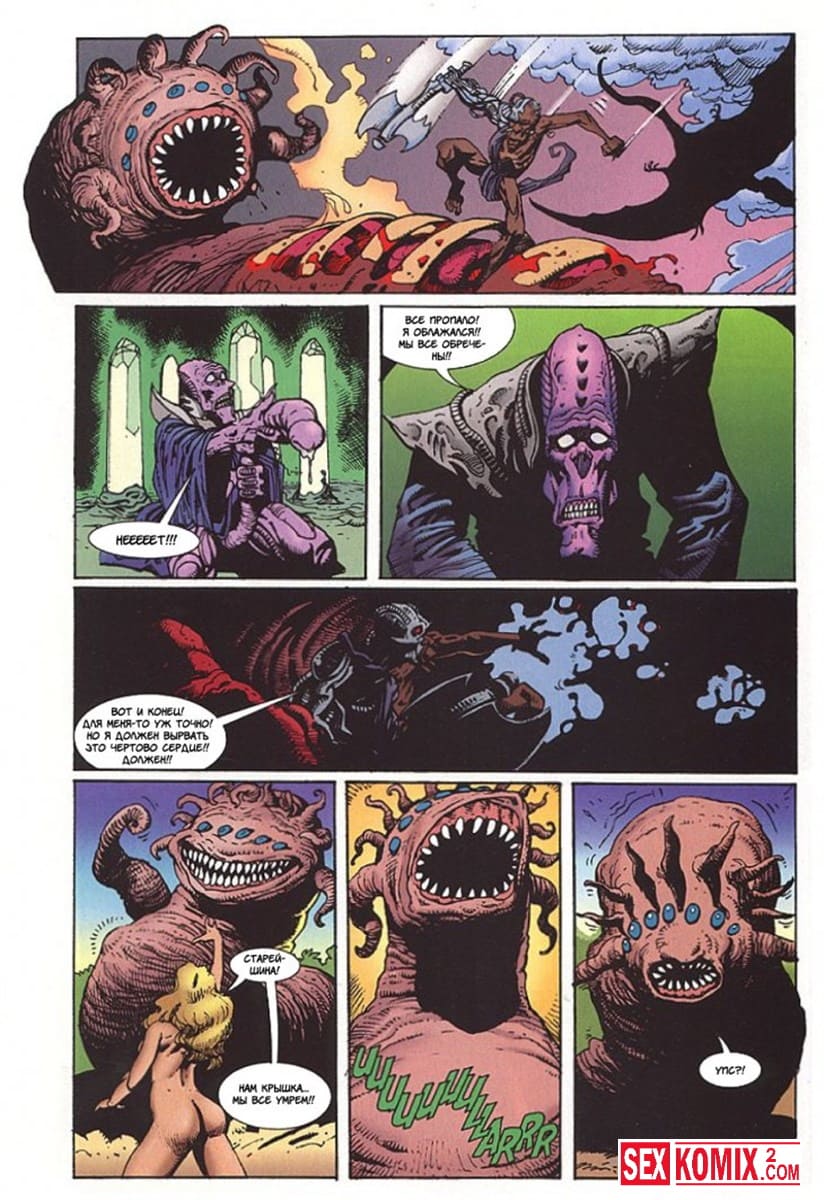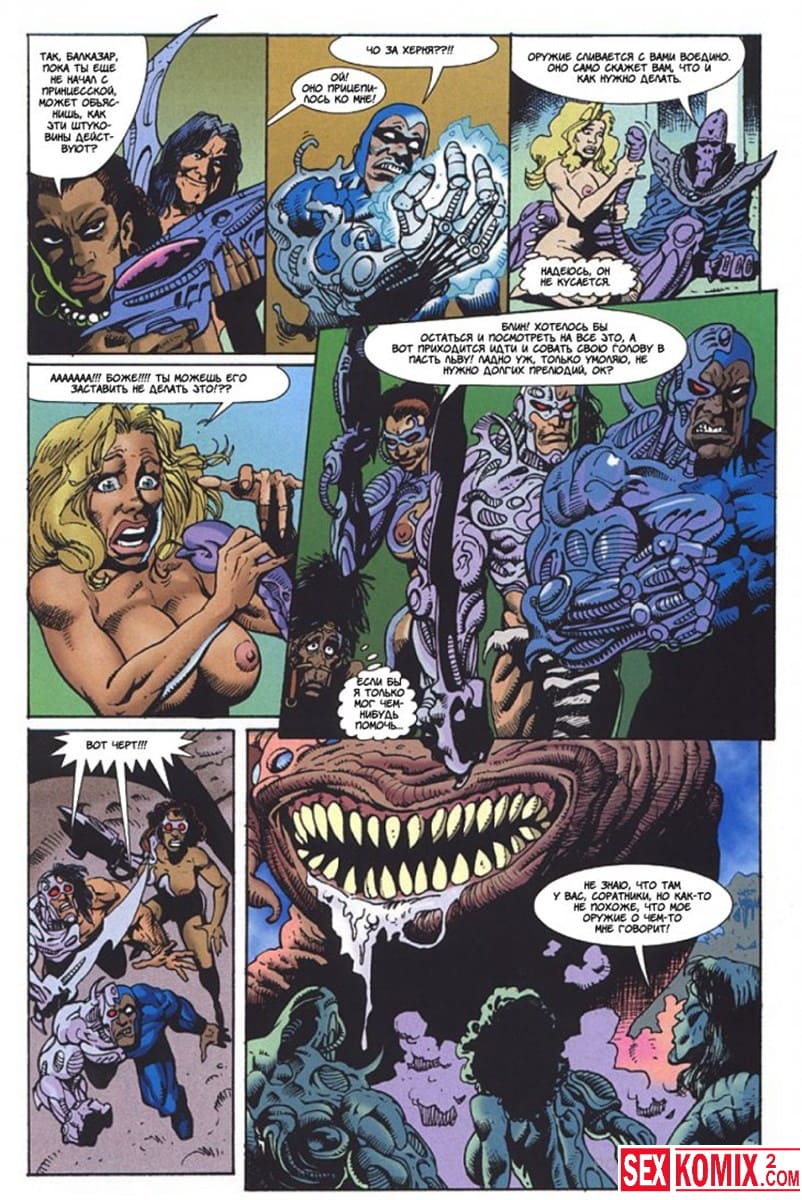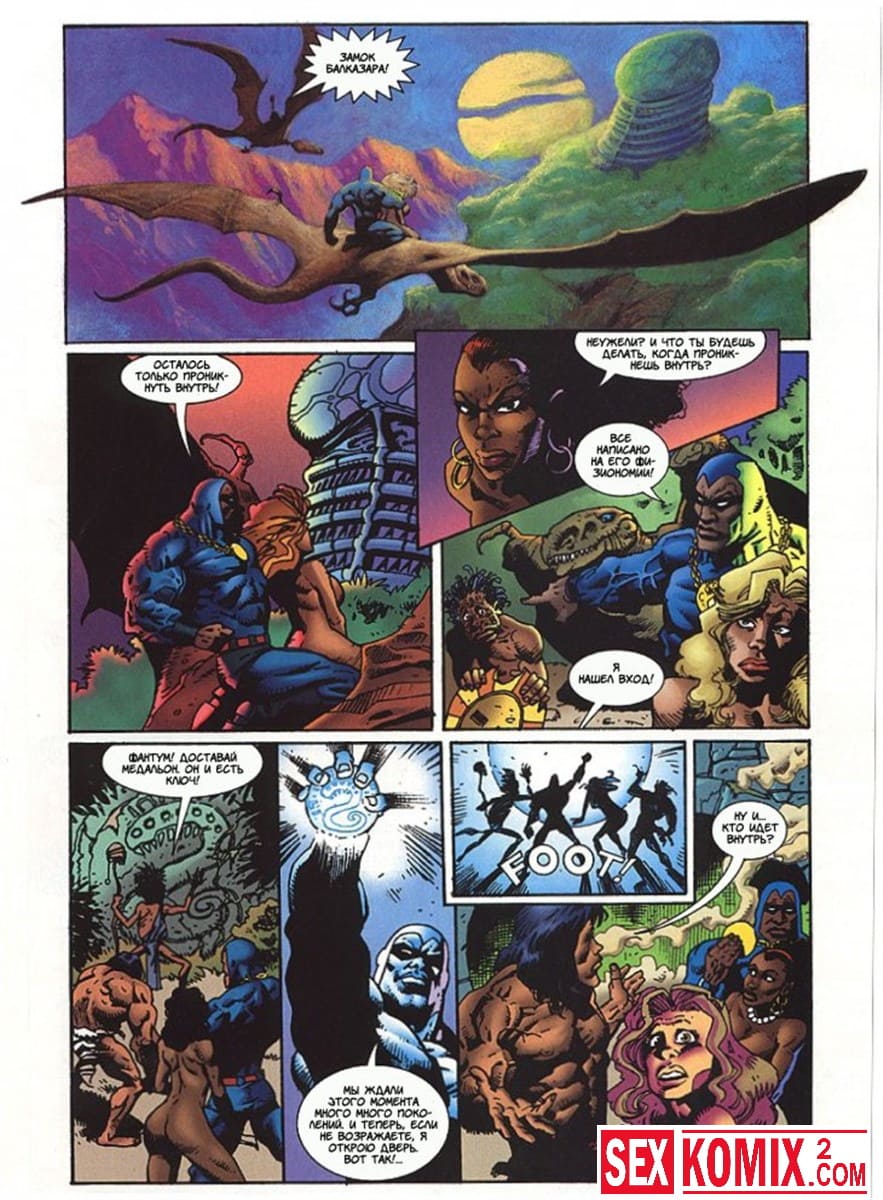 Порно комикс Латиша и затерянный мир. Часть 4. Доблестные девушки, чернокожая брюнетки и блондинка с большими сиськами отправились на бой со злым колдуном, который управляет гигантский монстром.