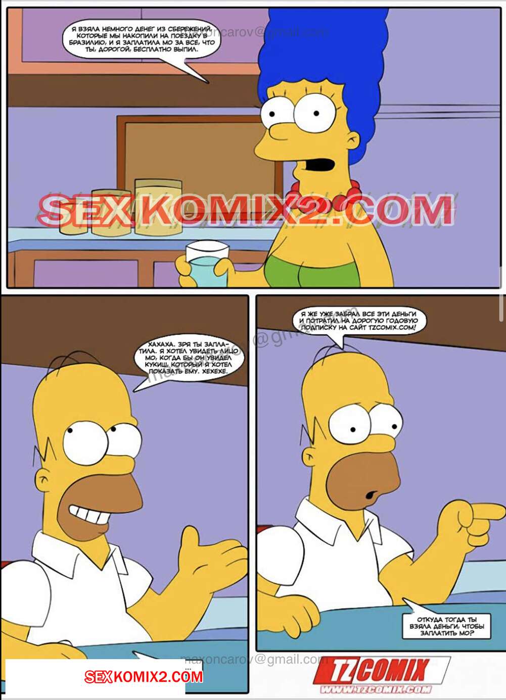 Порно комикс Симпсексы. Часть 2. Гомер рогоносец. HQPorno TZComiX Горячая красотка Мардж продолжается веселиться с друзьями своего мужа. Она раздевается перед ними и сосет большие хуи парней, после чего дает им себя хорошенько выебать.
