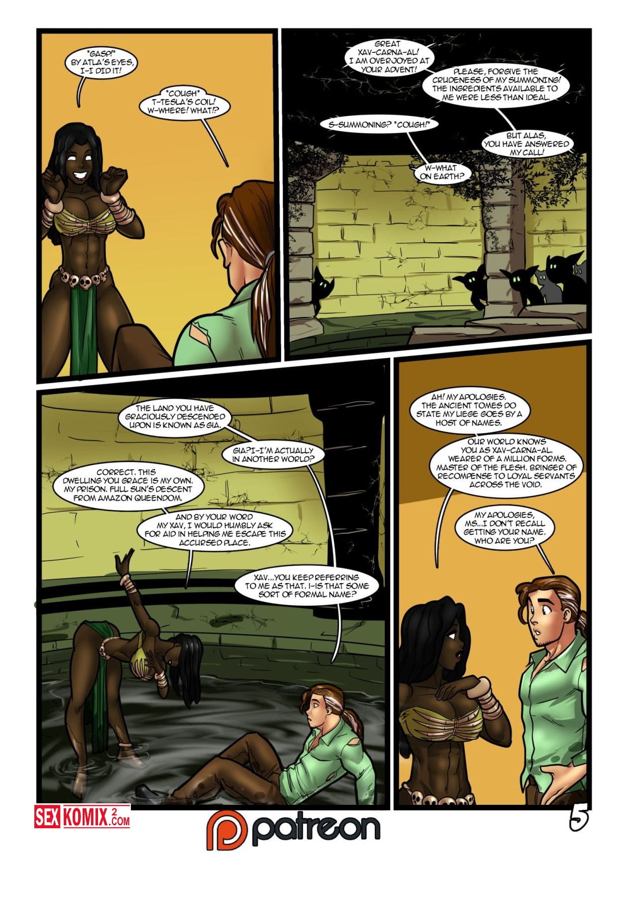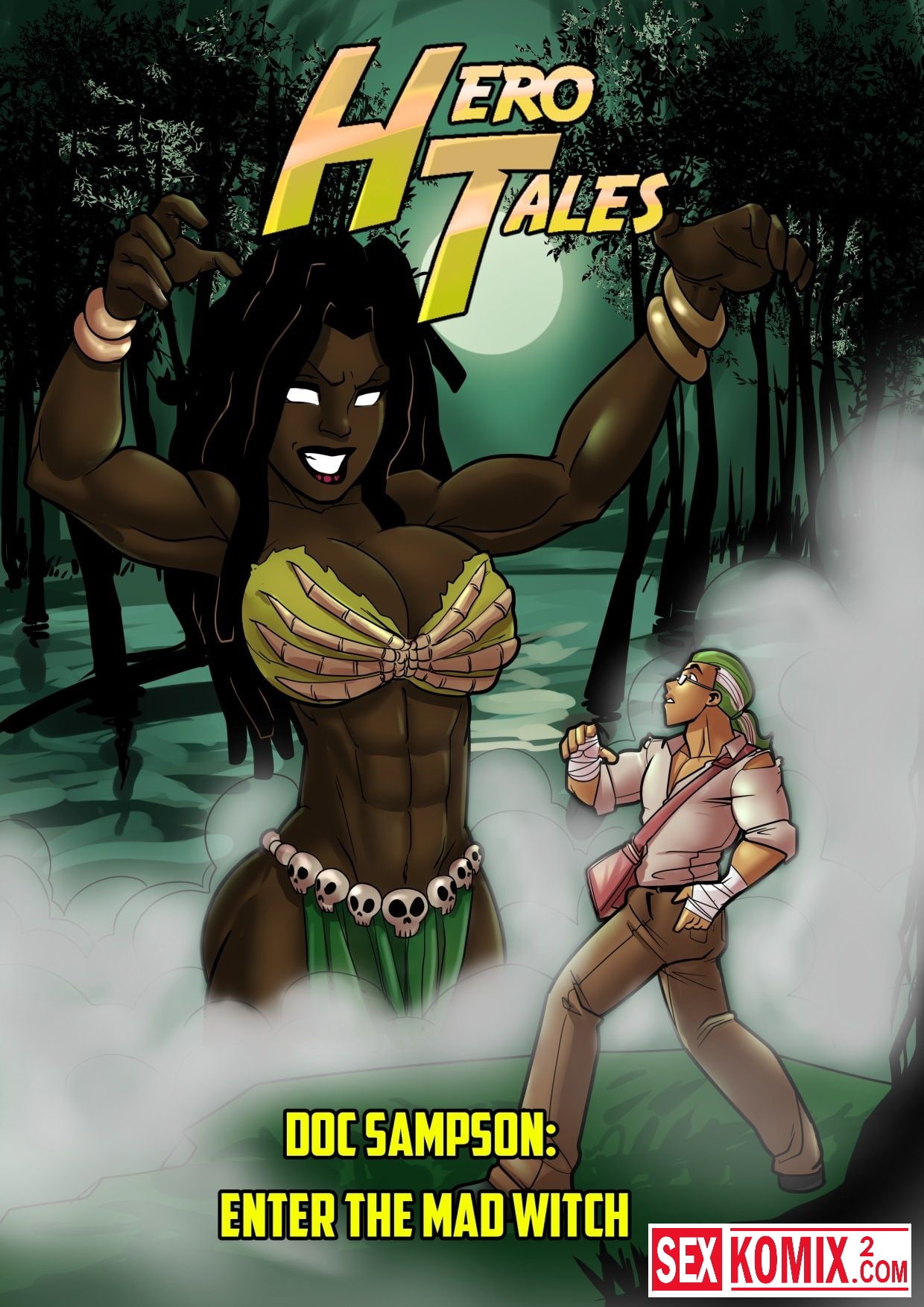 Порно комикс Геройские сказки. Войти в безумную ведьму. Английский. Чернокожая колдунью устроили обряд в лаборатории своего знакомого ученого и мужчина сам того не хотел, но оказался втянут в её колдовство. Он оказался в другом измерении и эта чернокожая красотка захотела секса с ним.