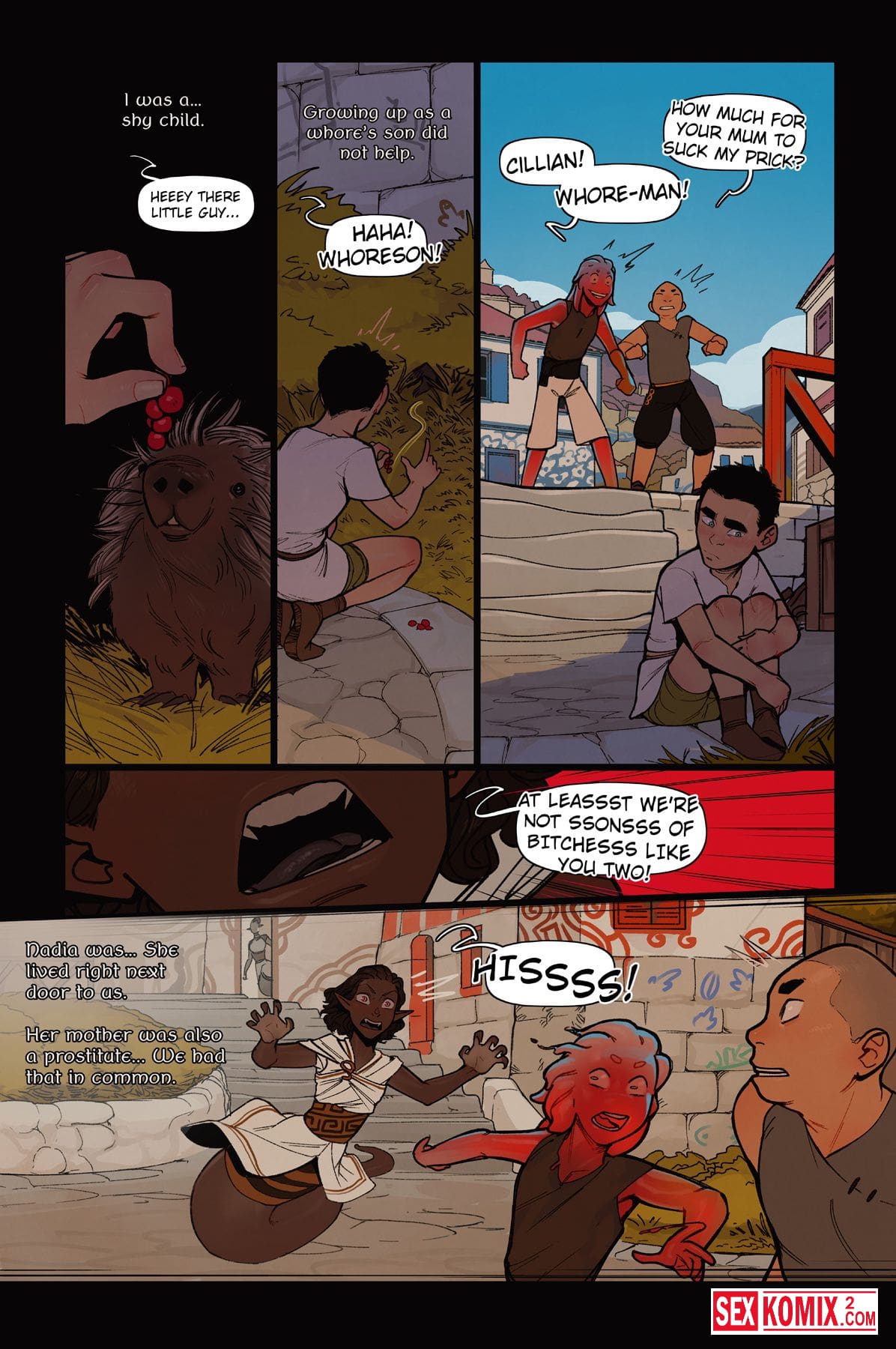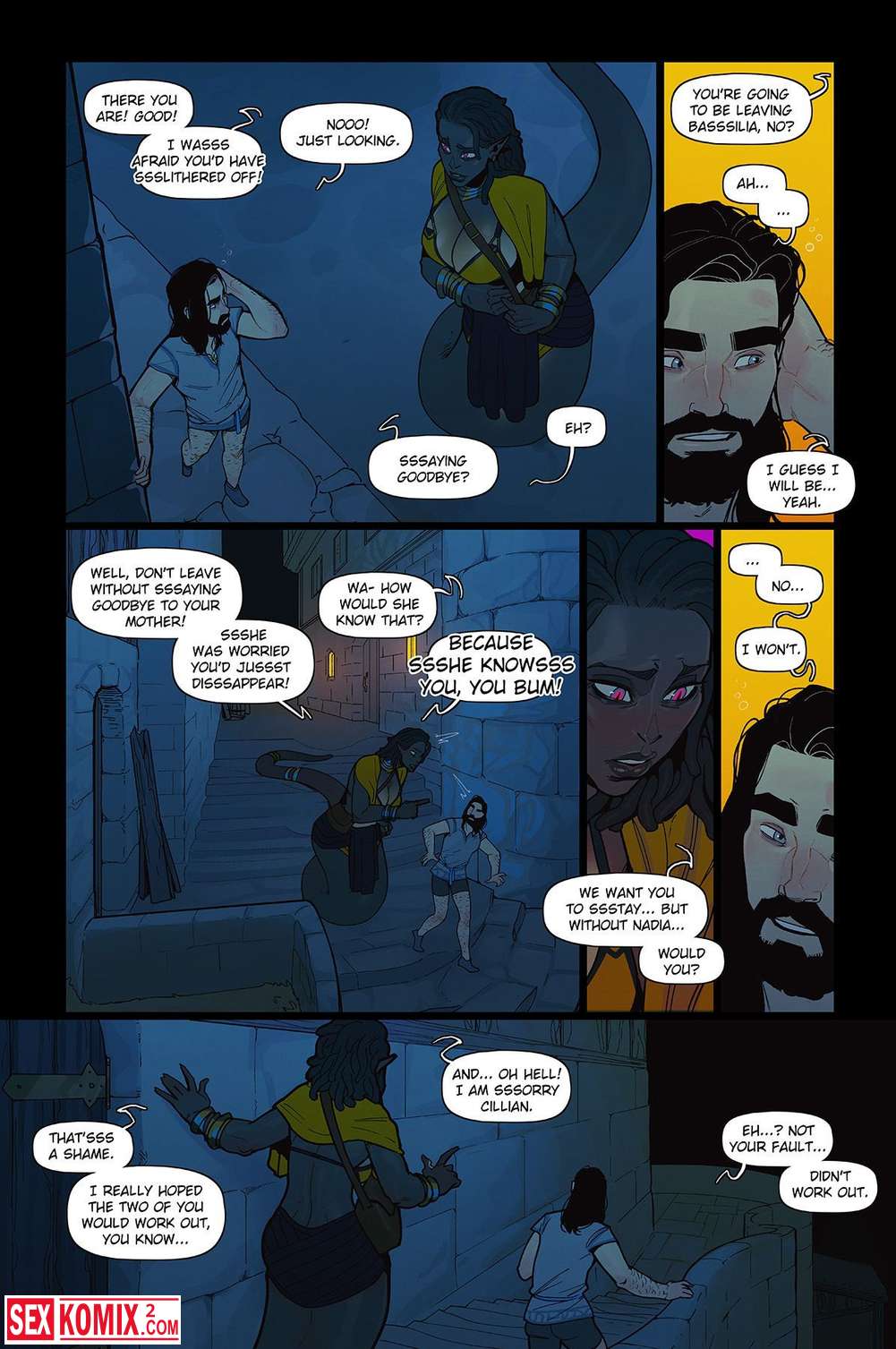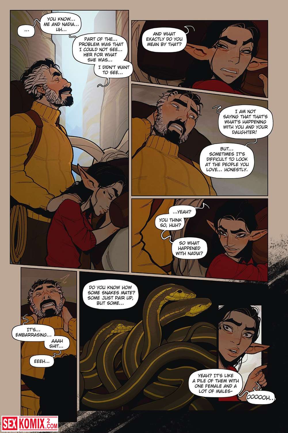 Порно комикс Альфи. Часть 14. Английский. Не большая история о городе в человека-змеями, они очень хорошо уживаются с людьми. Дети дружат и играют вместе, даже взрослые связывают отношения с ними. Вы увидите как парень живет с одной змее-девушкой и занимается с ней сексом.