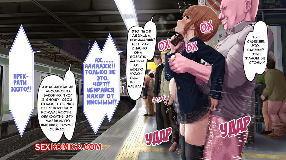 Порно комикс Станция после легализации изнасилования. The Station After Rape Legalization Горячая сисястая брюнетка ждала свой поезд на станции, а два парня решили воспользоваться ее горячим телом. Они пристроились к ней сзади и хорошенько выебали красотку, заполнив ее своей спермой.