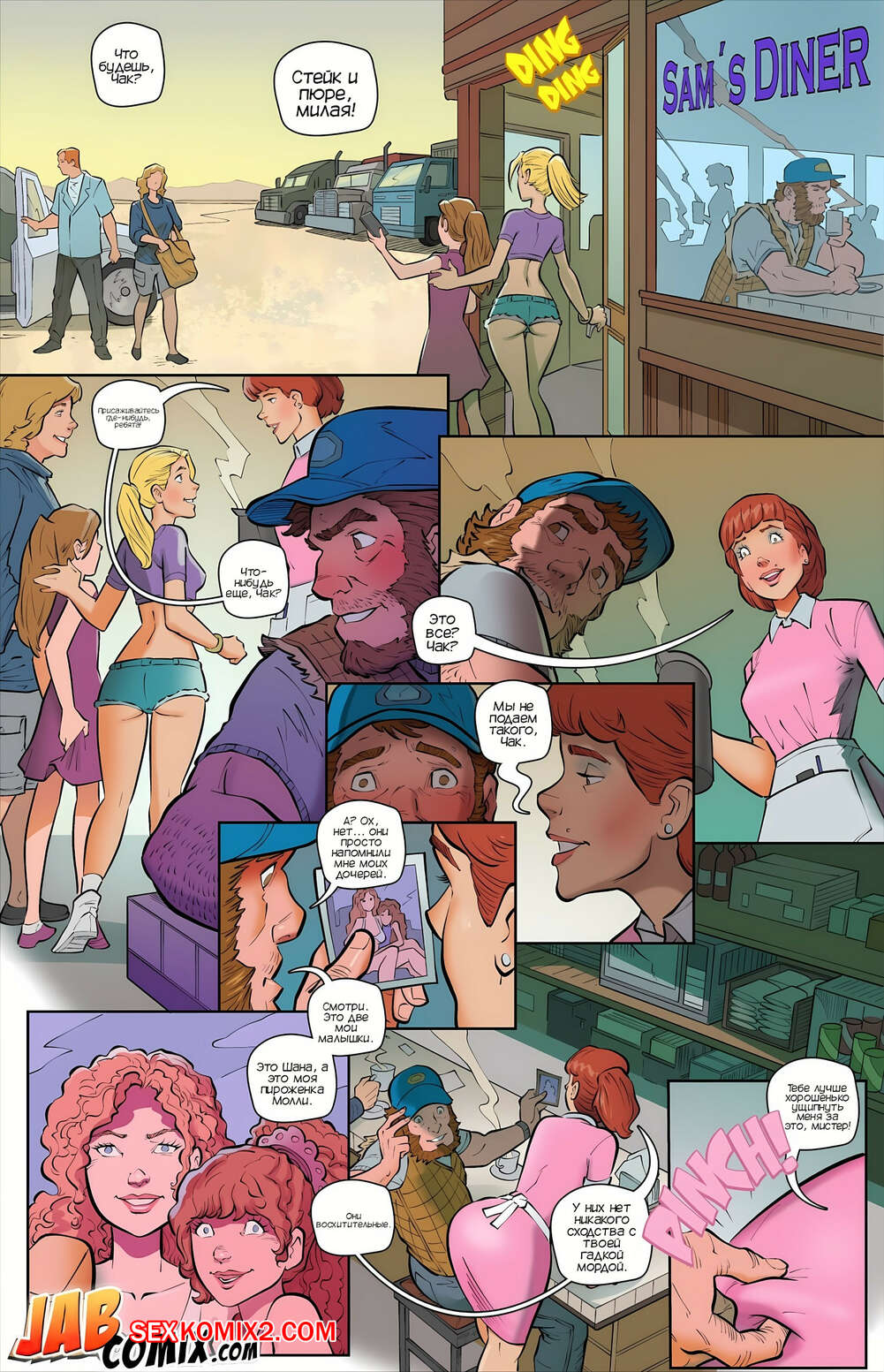 Порно комикс Моя дочь стриптизерша. My Stripper Daughter. Jabcomix Семья заехала по дороге в кафе перекусить, где на молодых девушек уставился посетитель. Он рассказал официантке, что молодые девушки напомнили ему о его дочерях. Теперь нам предстоит узнать его историю..