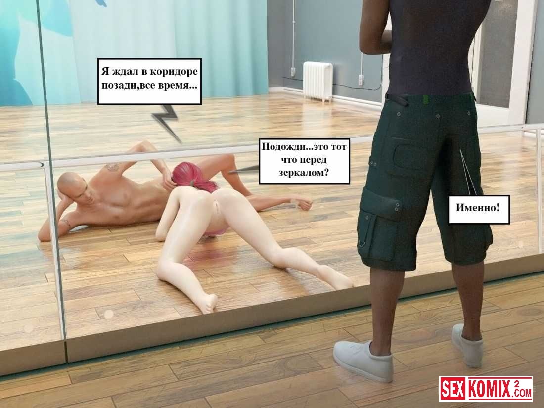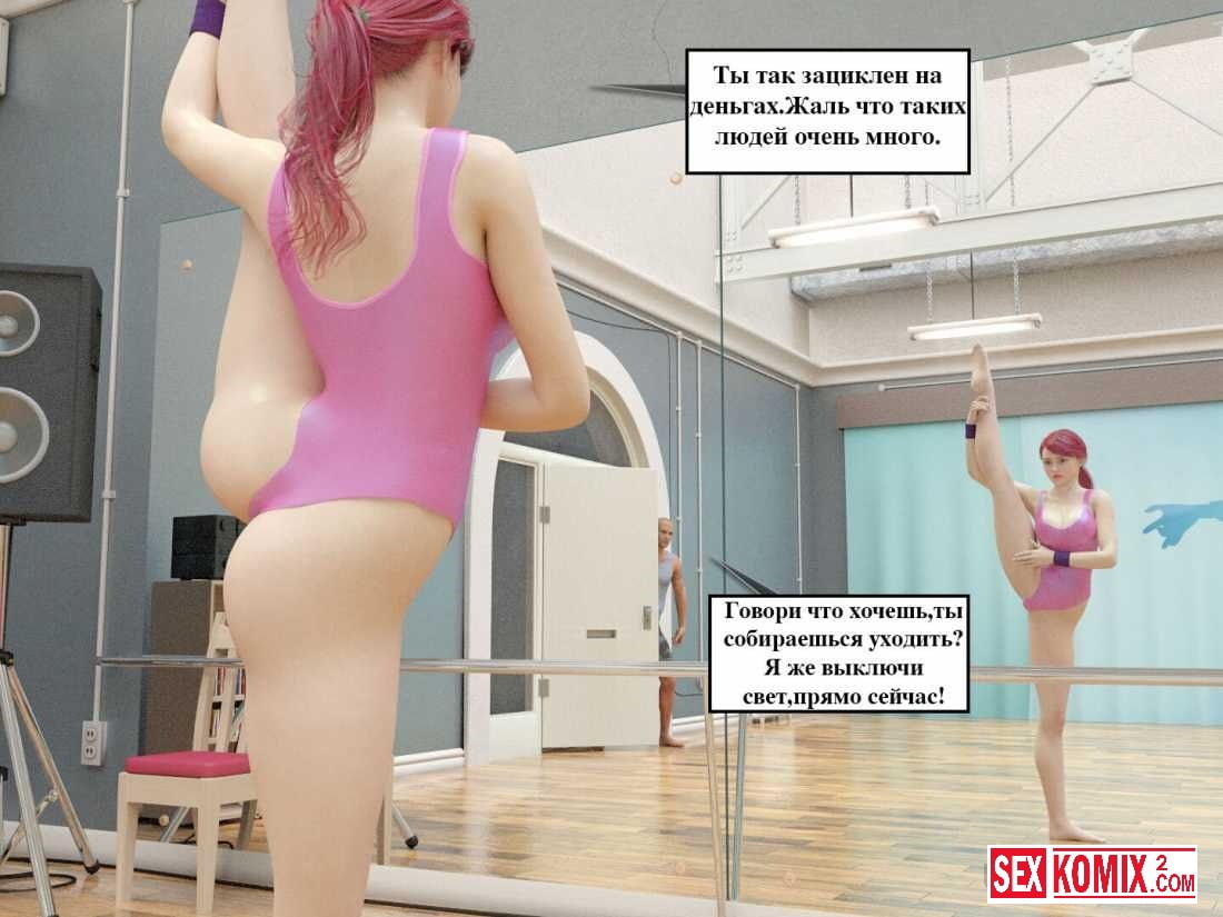 Порно комикс Ночью в студии. Партнер по танцам решил трахнуть свою напарницу и соблазнил её пока девушка делала растяжку. Она не смогла сопротивляться соблазну так как сама хотела этого секса. Но она совсем забыла, что за ней должен приехать бойфренд, видел как его девушка изменяет.