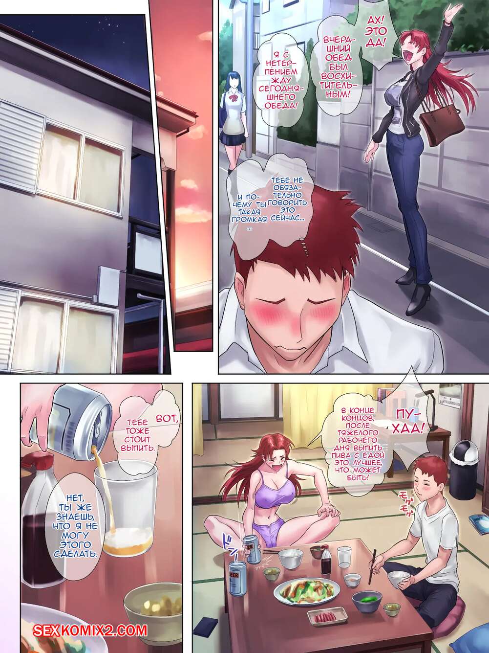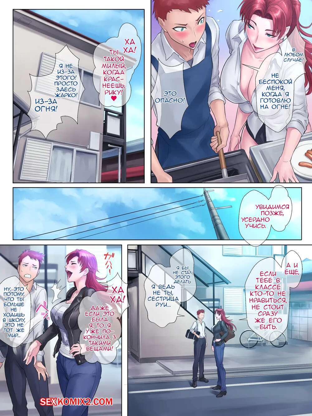 Порно комикс Tsuyoki de Otokomasari na Ane ga Otouto ni dake Miseru Onna no Kao Сисястая милфа брюнетка была очень возбуждена и решила повеселиться с молодым парнем. Она разделась перед ним и стала сосать его большой хуй, после чего дала ему себя хорошенько выебать.